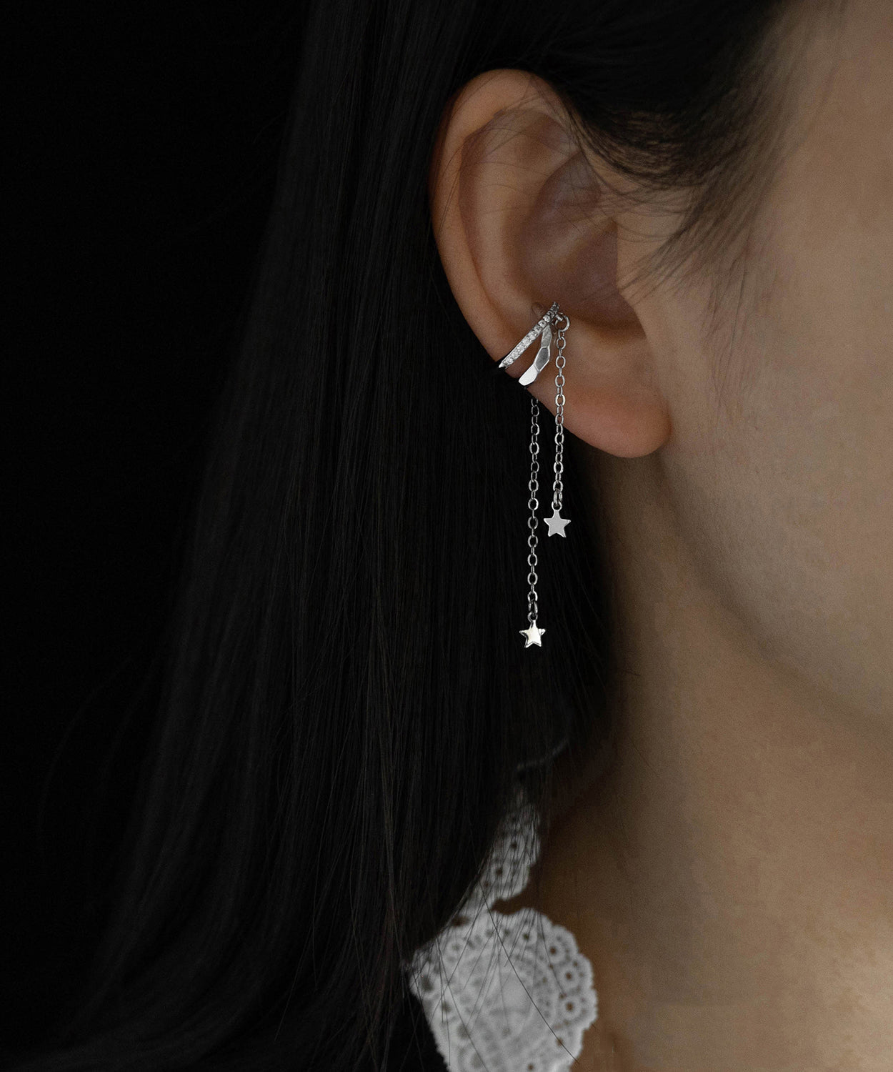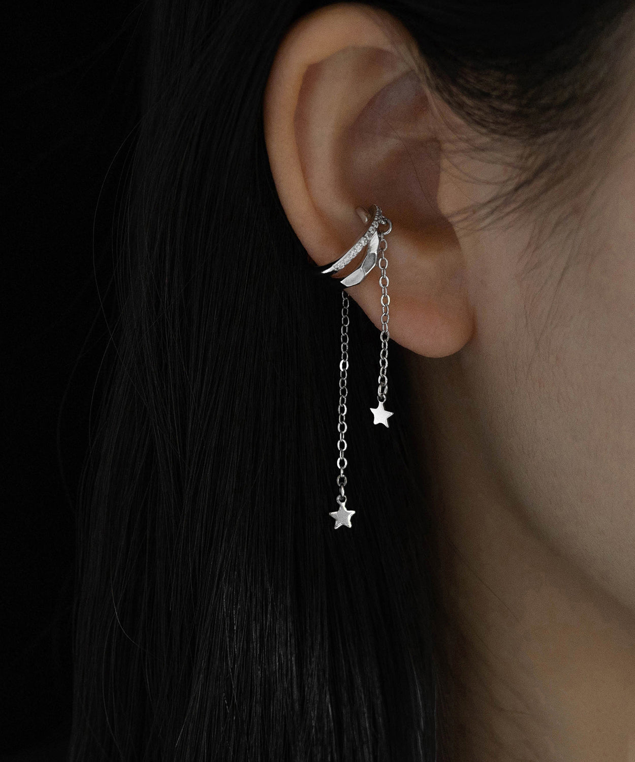 シルクドロップスタイリッシュジルコンタッセルスターイヤリング銅