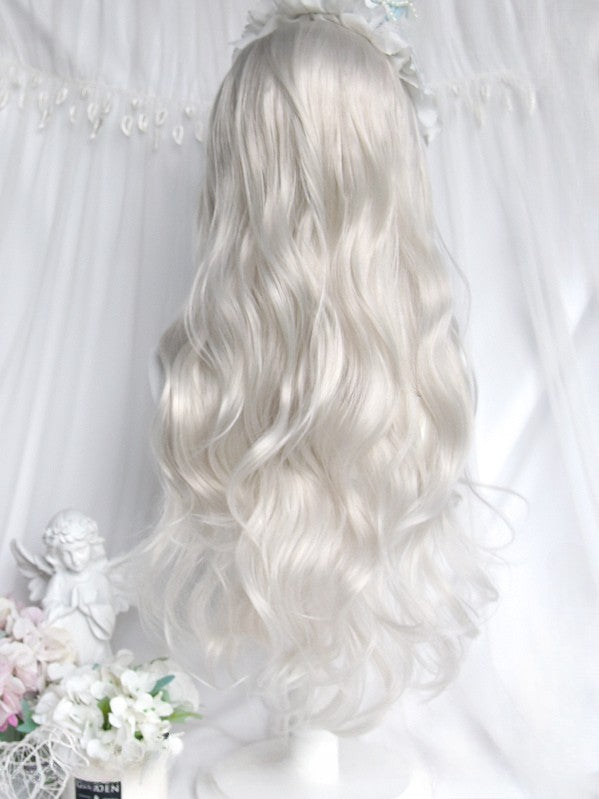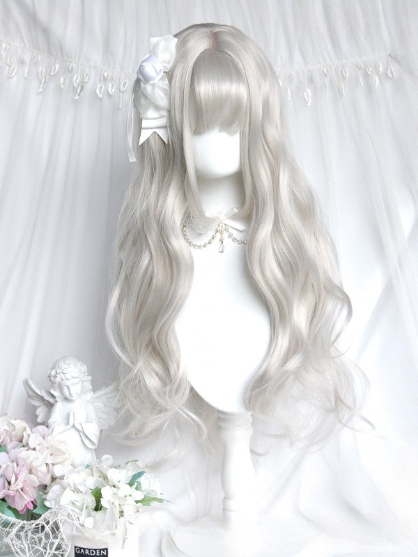 シルバーの前髪 長さ68cm フルウェーブウィッグ