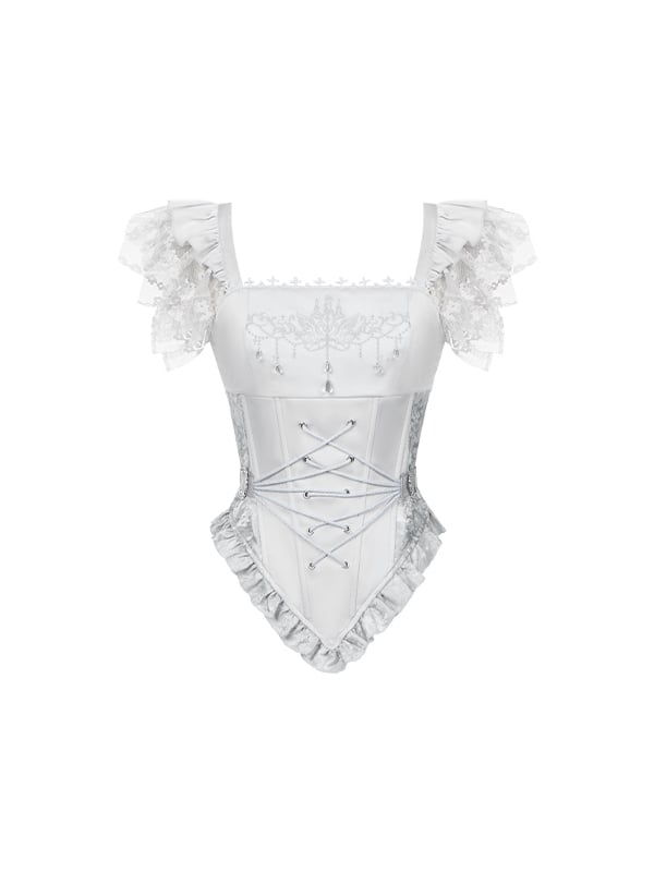 Silver Candelabra Corset Swan Boned Top Embroidery Waist