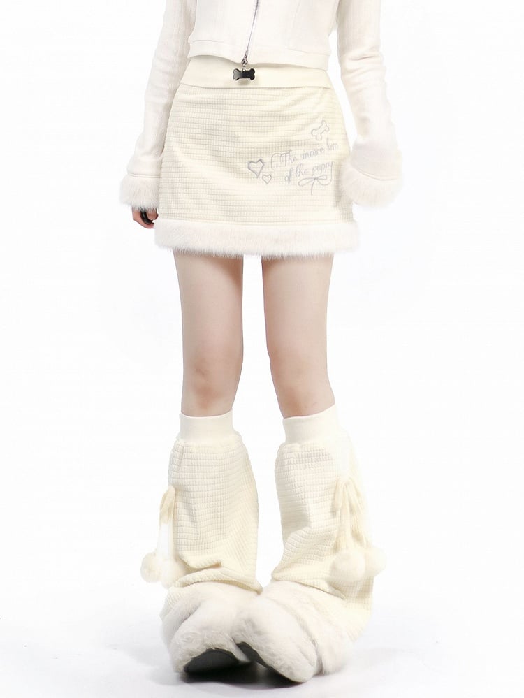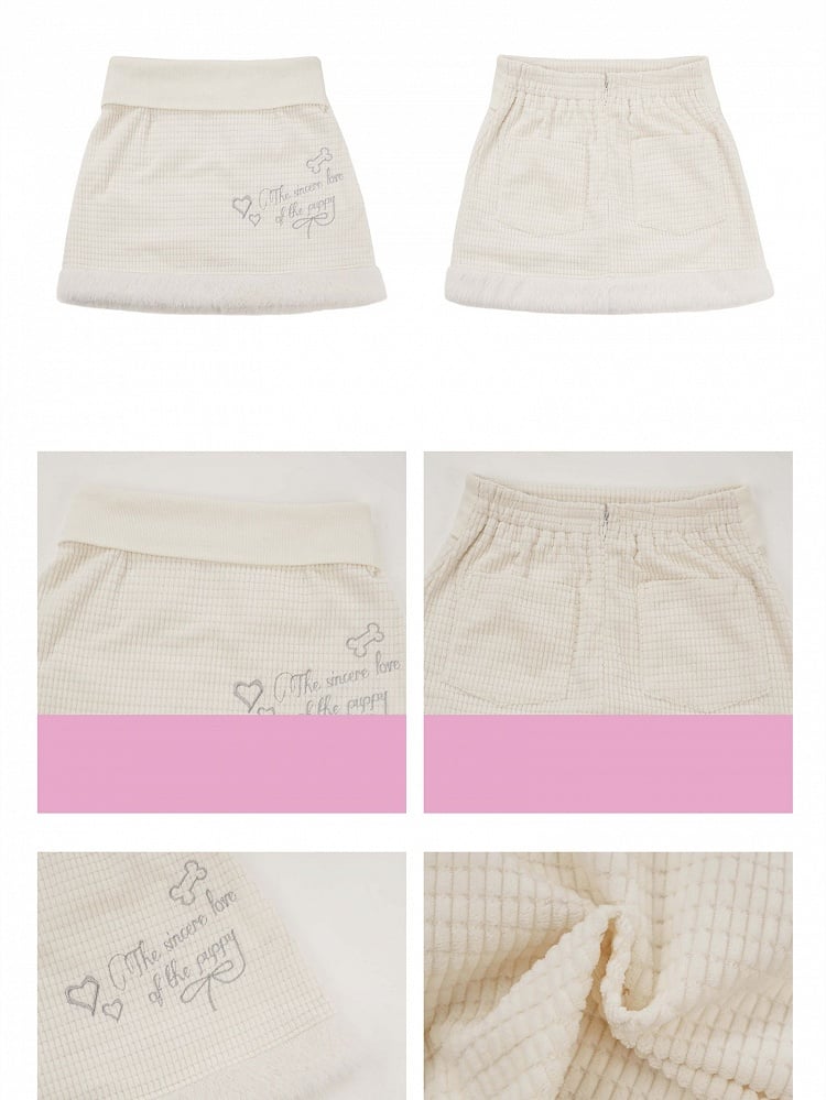 シルバーミニスカート クリームカラーチェック柄刺繍