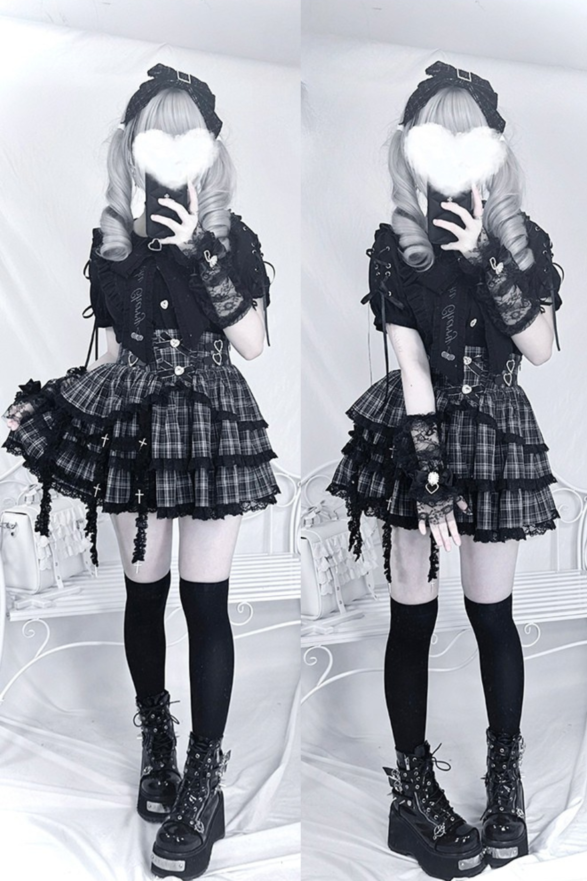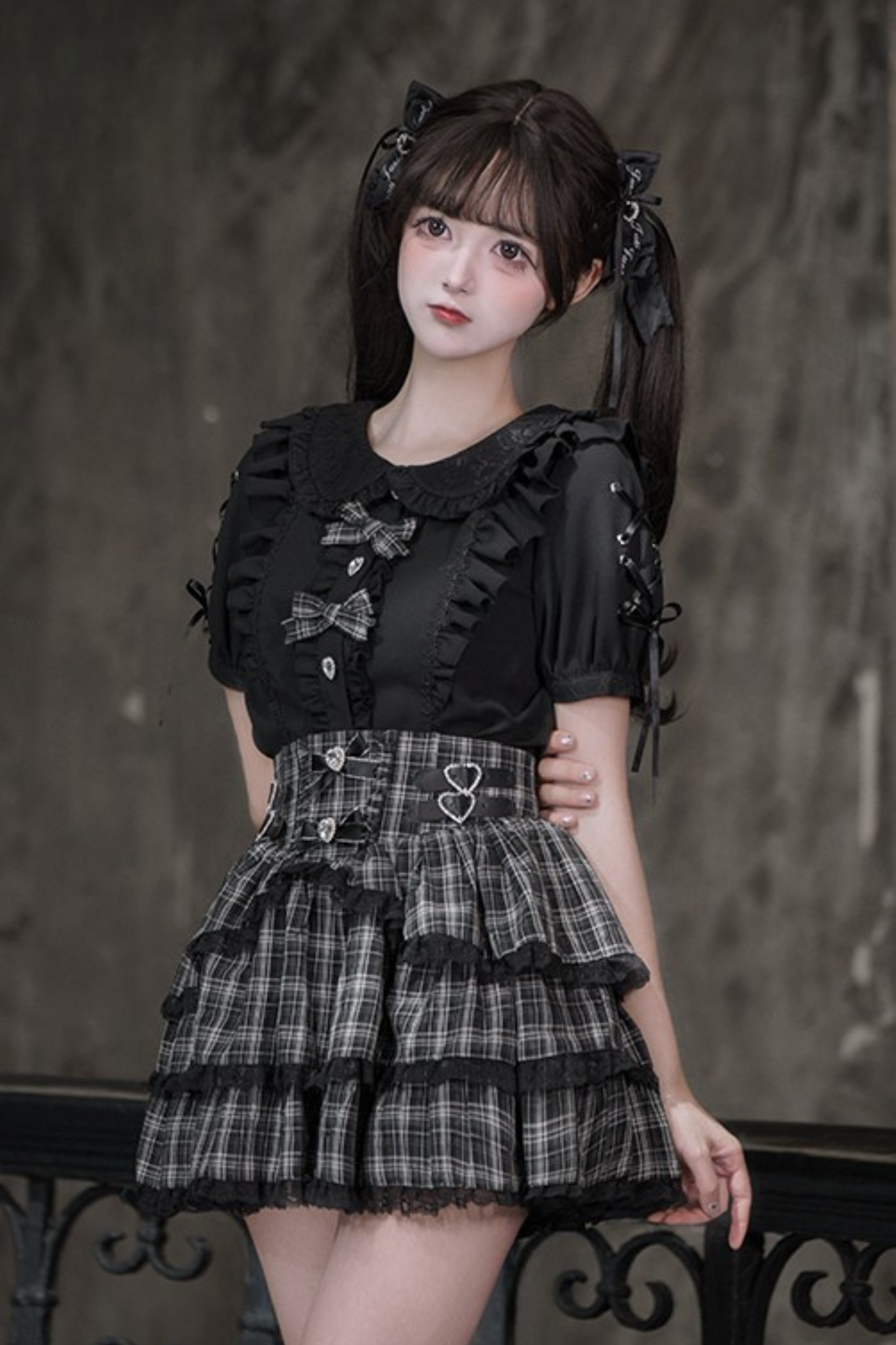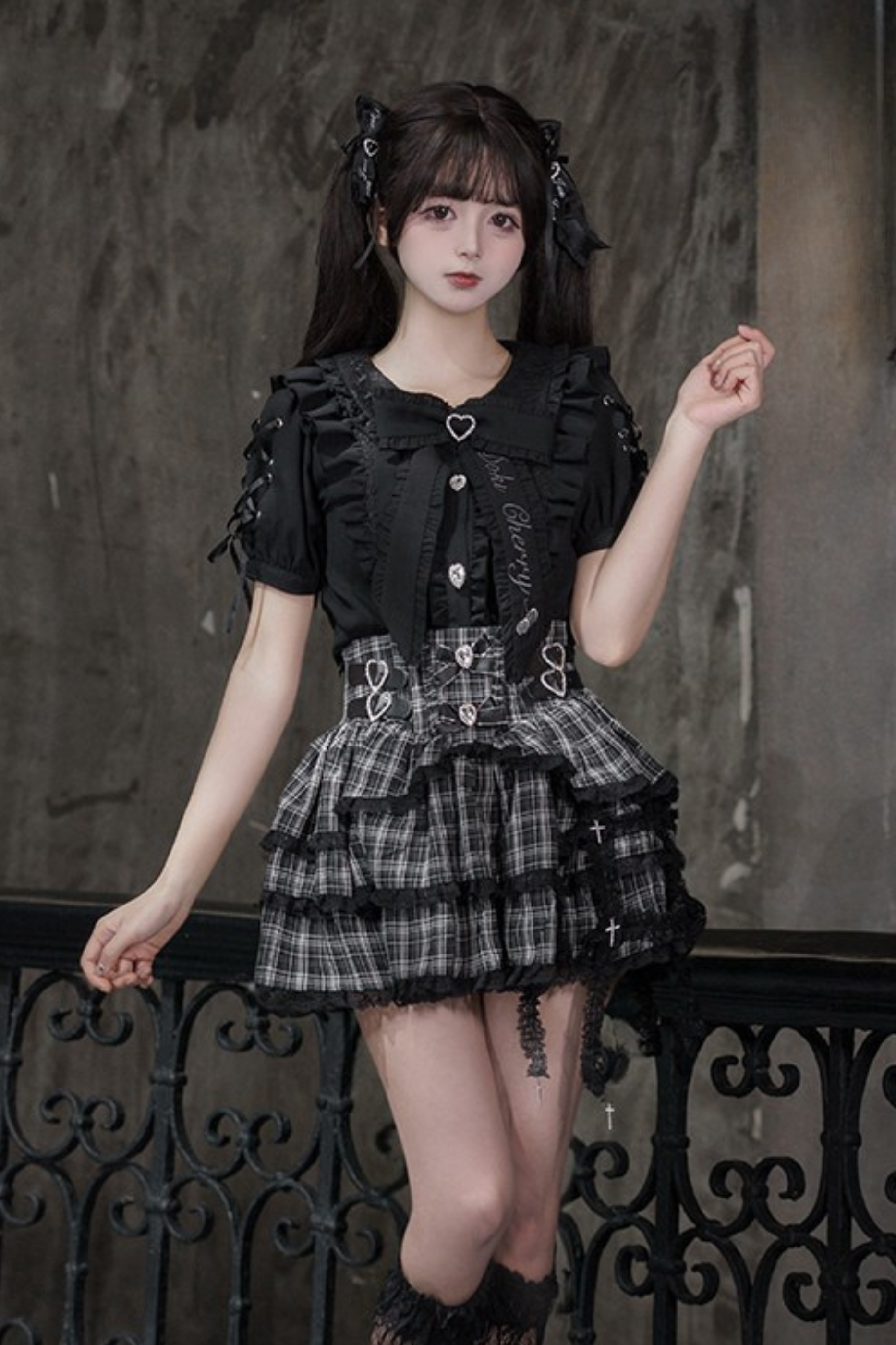 ❤︎予約商品 ブラックリボンシャツ+バードケージスカート マインコード❤︎ ⚠️こちらの商品は人気商品のためお届けまで2ヶ月ほどかかる場合がございます。