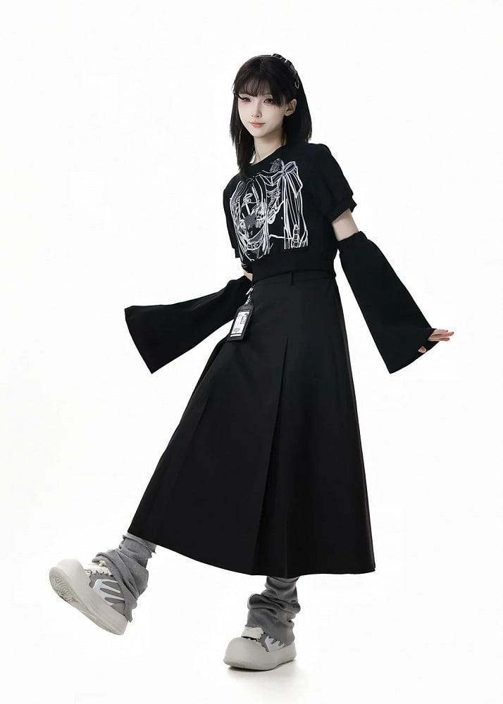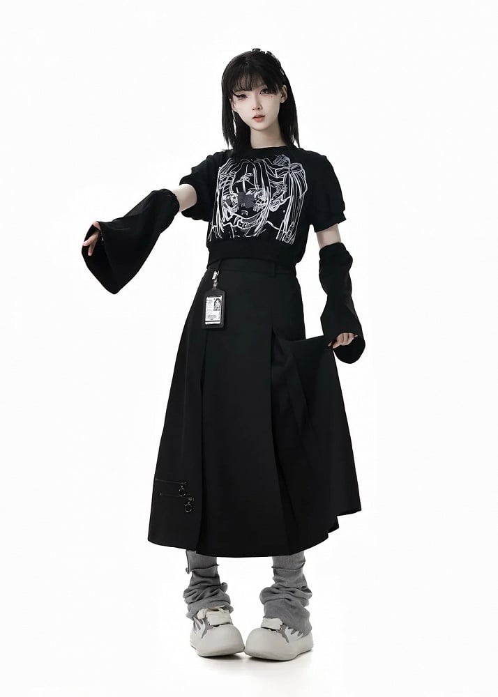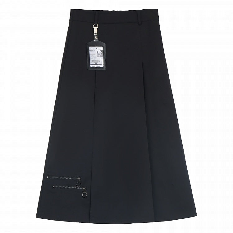 スカート ボックスプリーツ アンクル ブラック ジッパーディテール 長さ