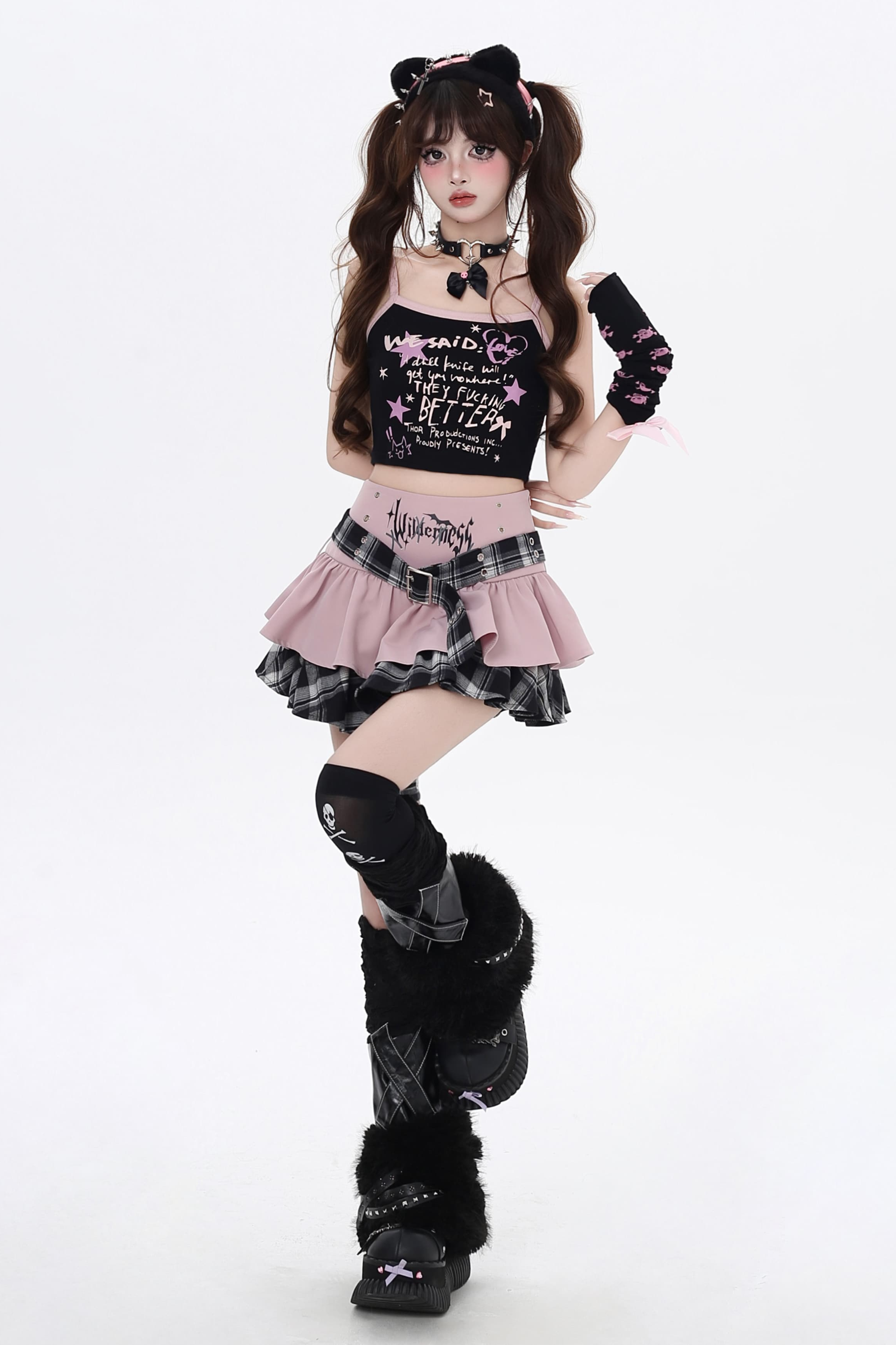 ❤ゴシックアイコンサブカルチャーチェックケーキスカート❤