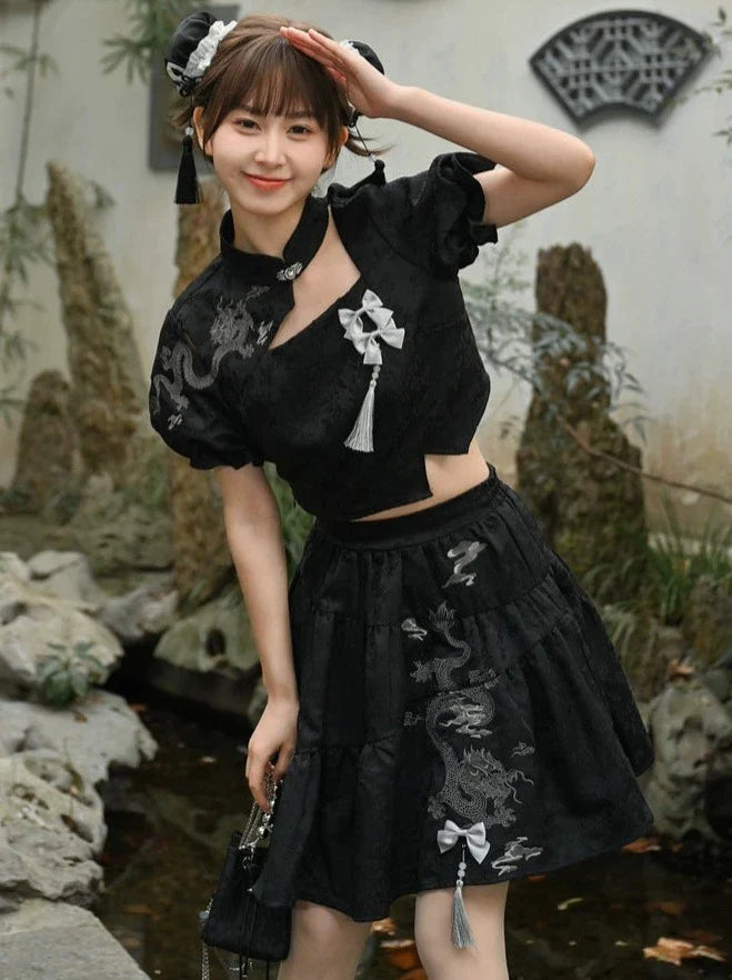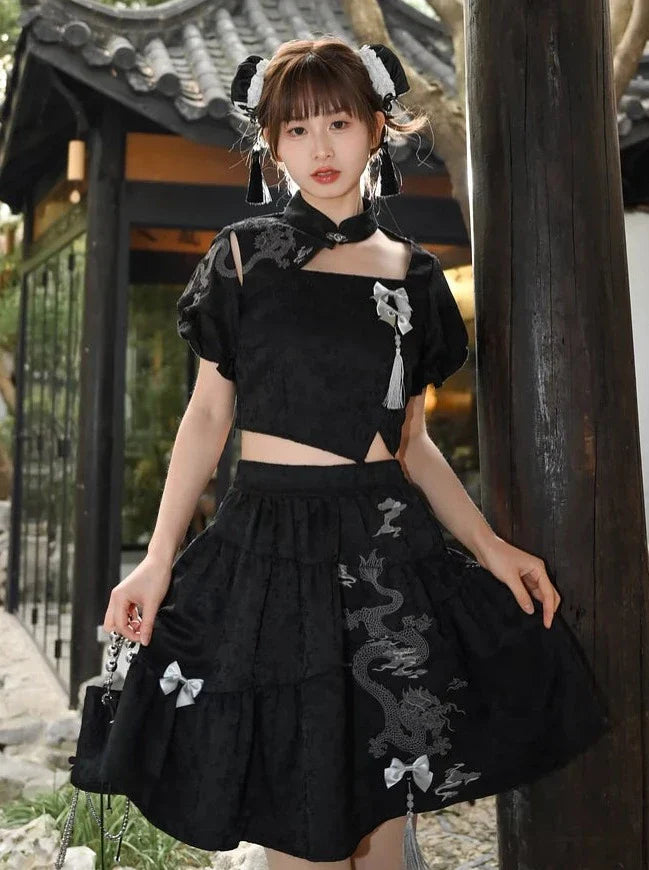 この愛らしいチャイナフレアドラゴンスカートは、ワードローブにキュートな雰囲気を加えたい方にぴったりです。ユニークなドラゴンプリントが、人混みの中でもひときわ目を引く存在感を放ちます。フレアデザインは快適なフィット感を提供し、どんな装いにも遊び心を加えます。