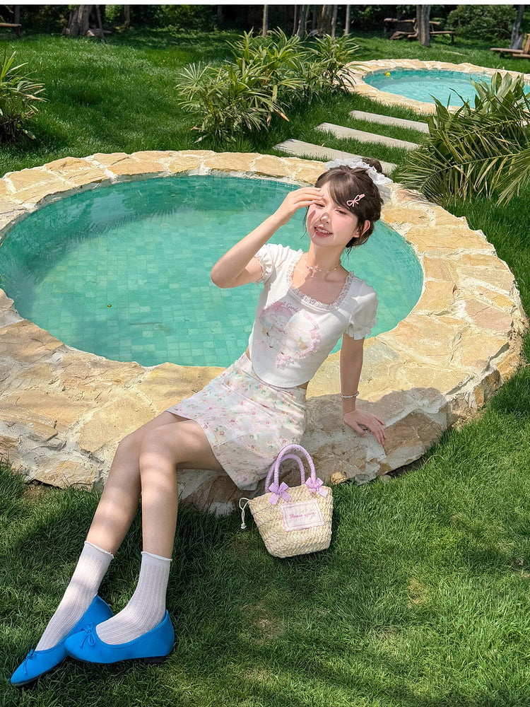 ピンクと白のオールドスクールロリータファッションドレス、蝶結びディテール、ロリータJSKセット