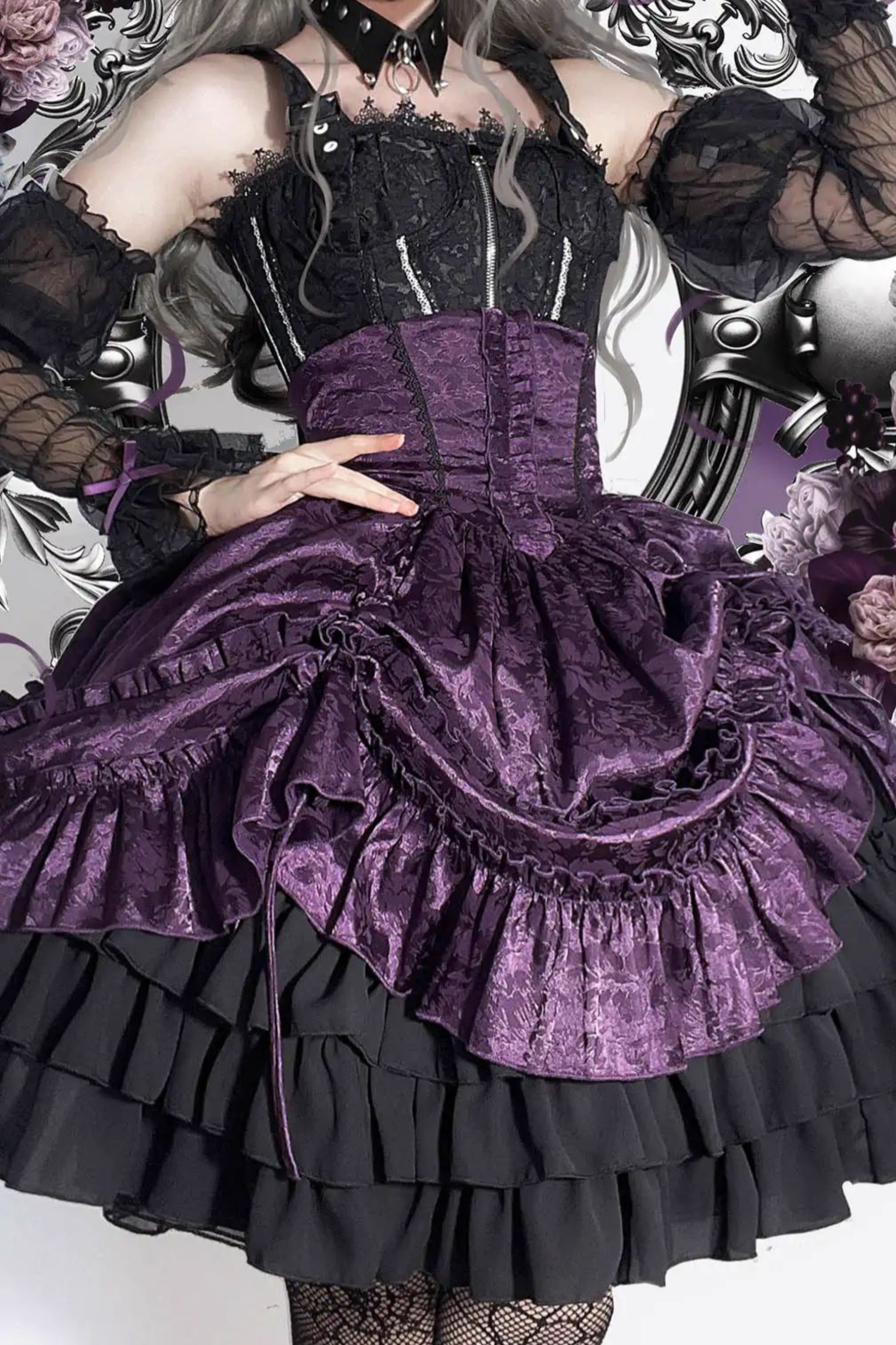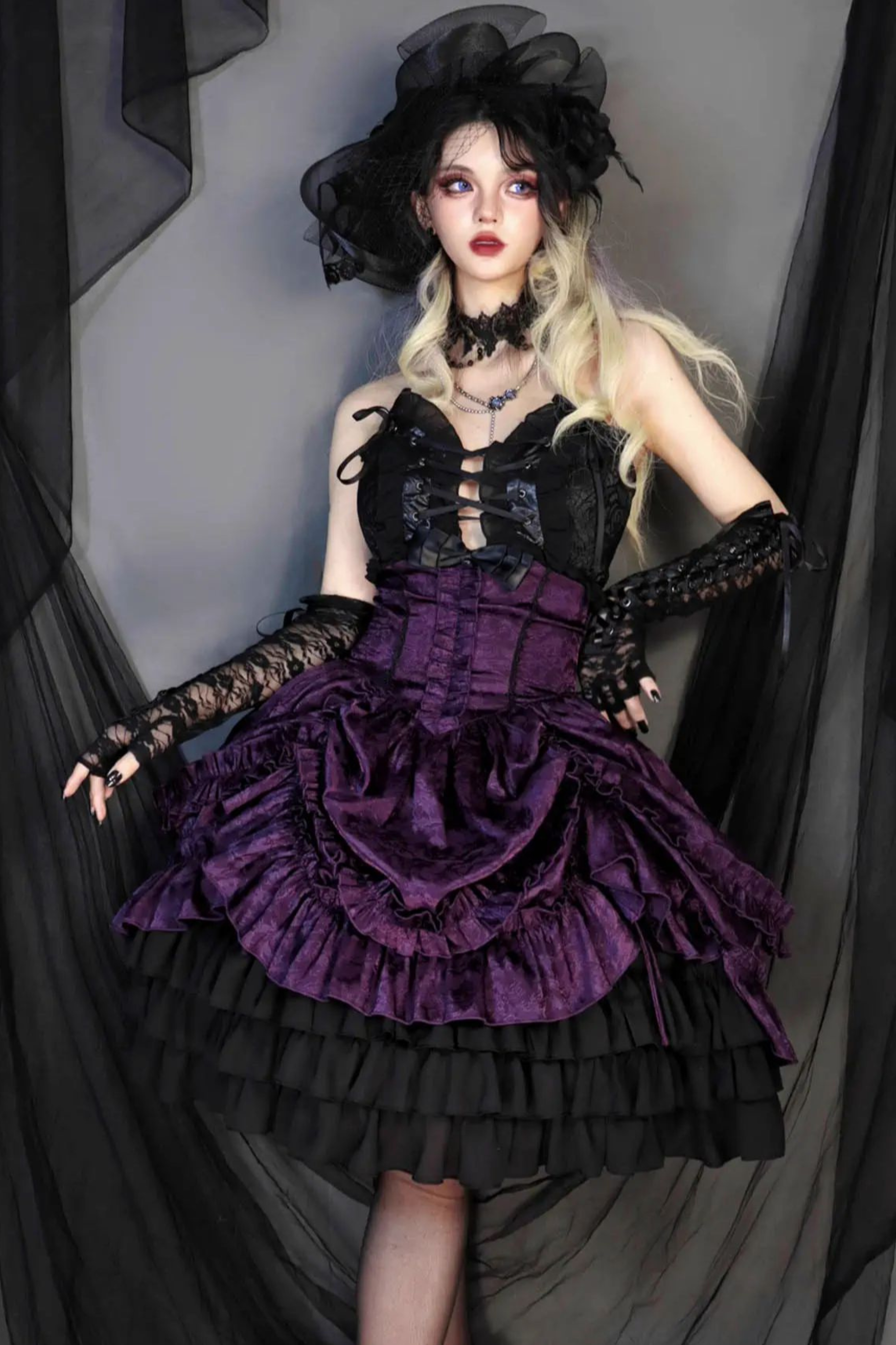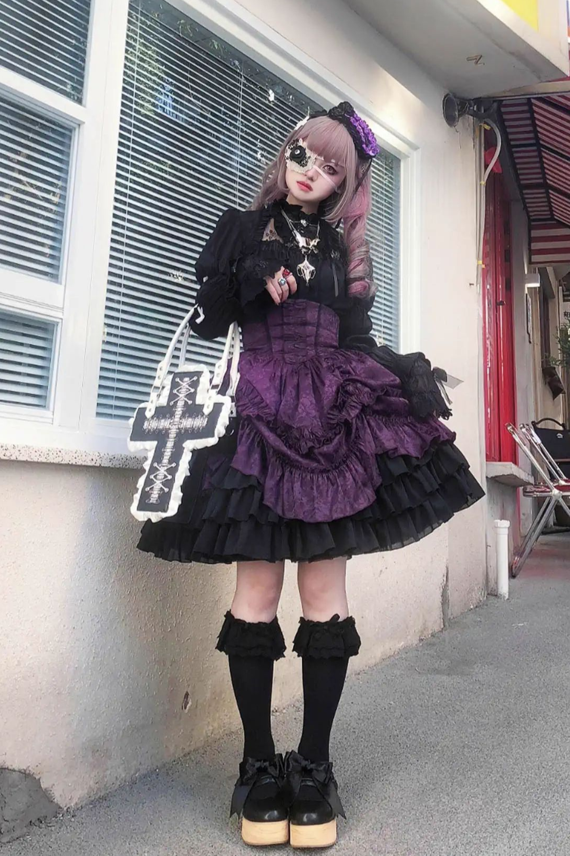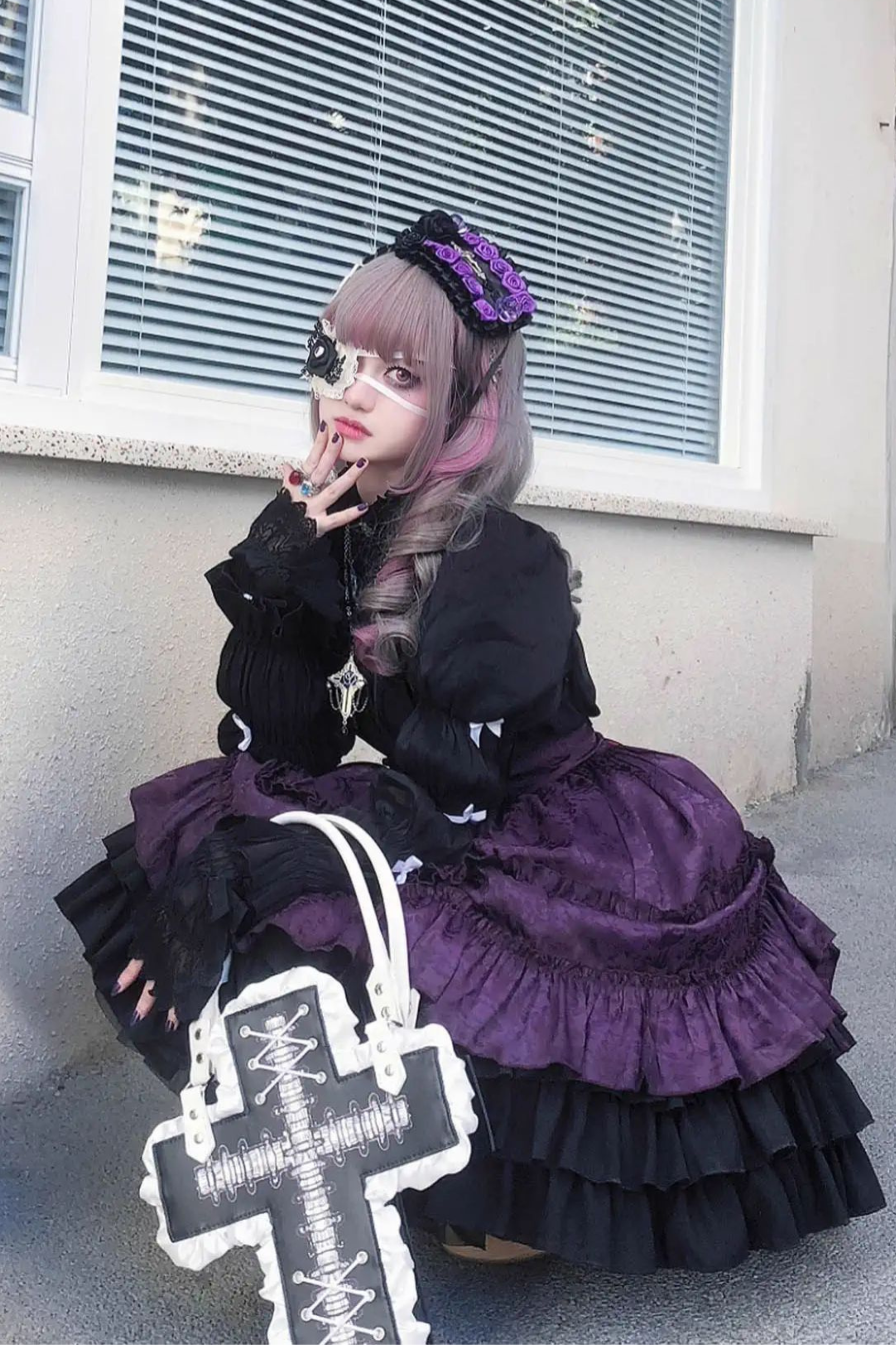 黒と白のオールドスクールロリータファッションドレス蝶結びロリータJSKセット
