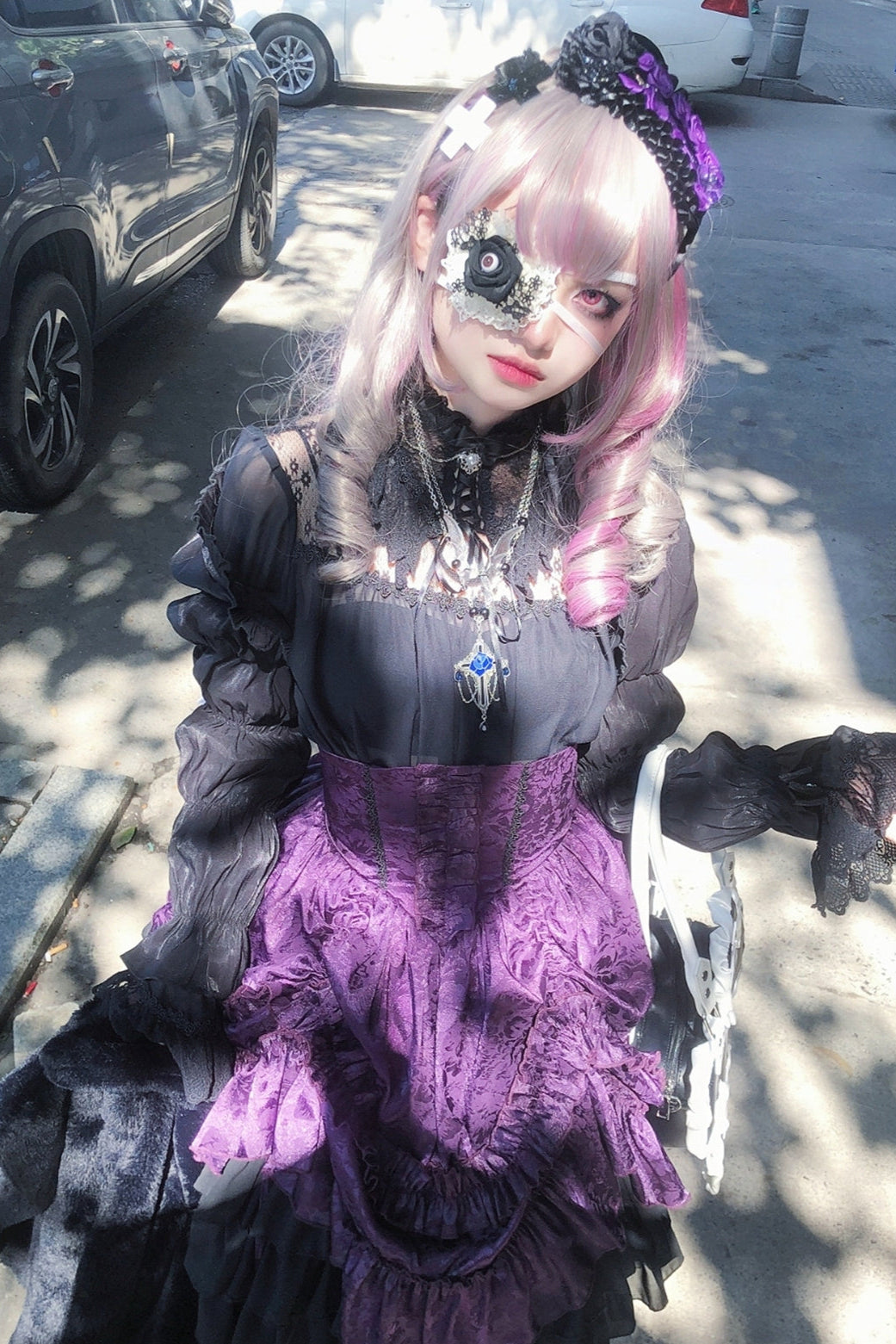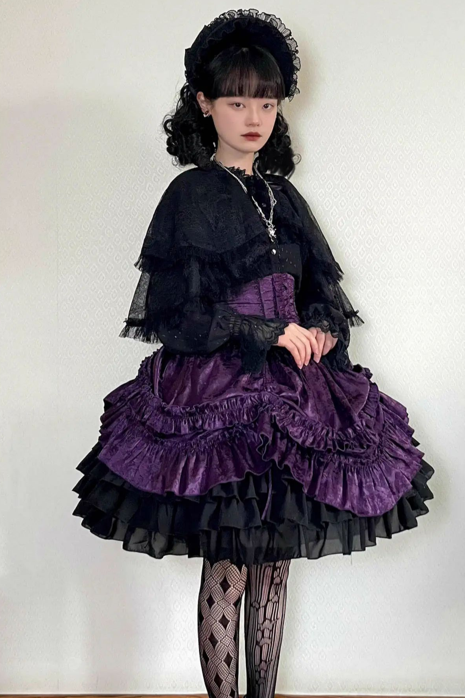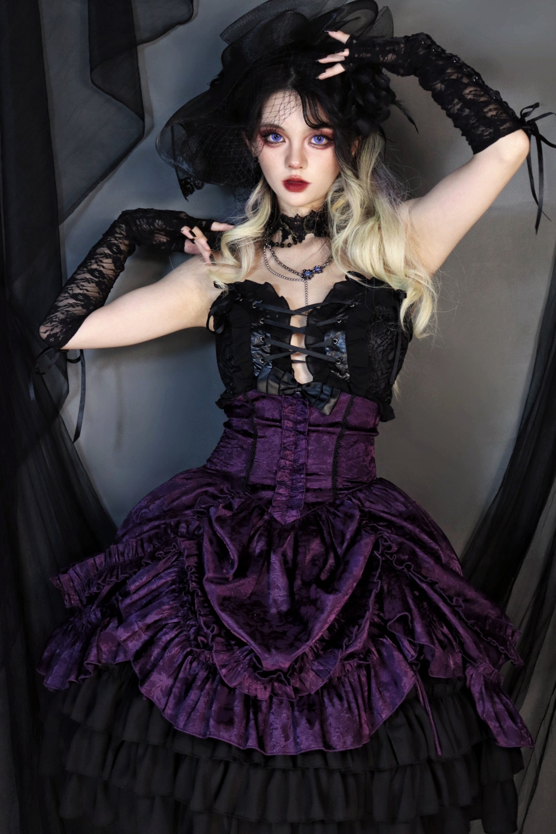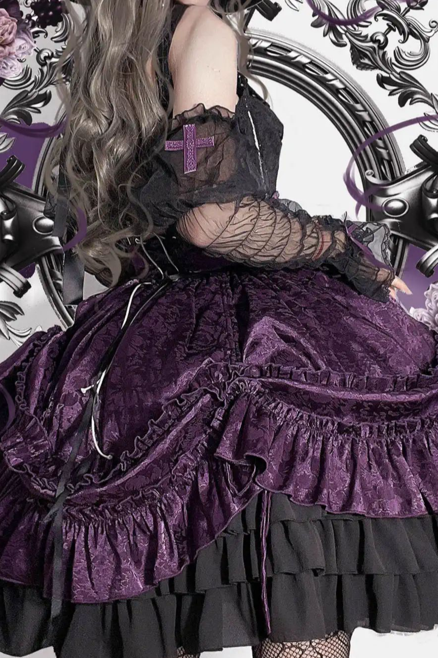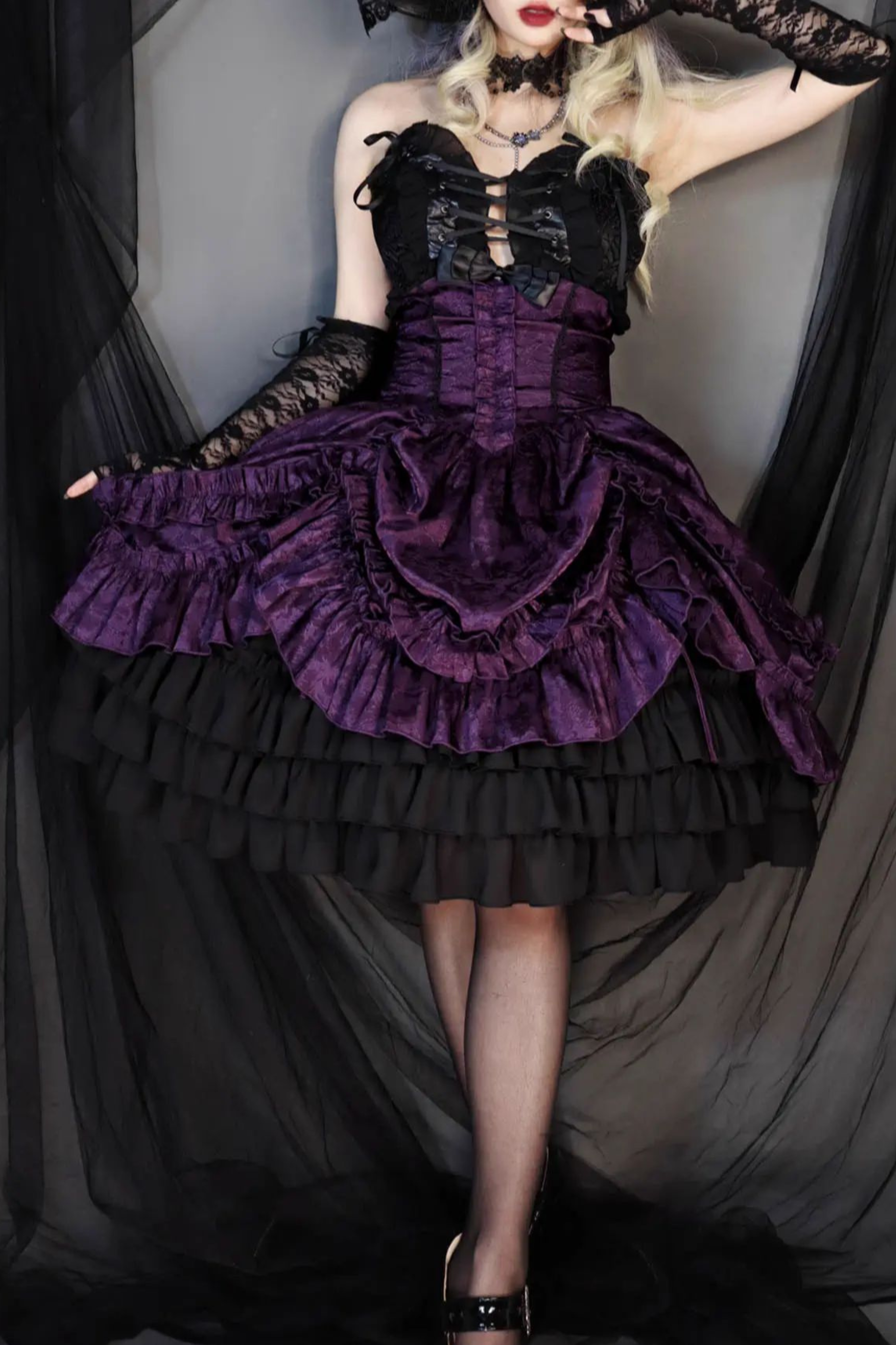 黒と白のオールドスクールロリータファッションドレス蝶結びロリータJSKセット