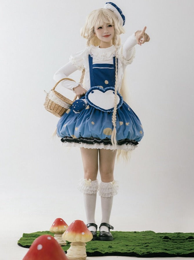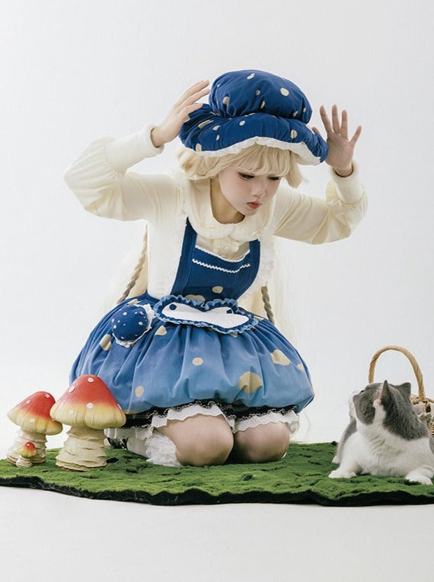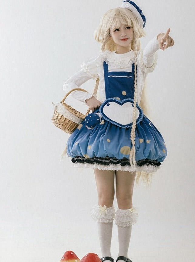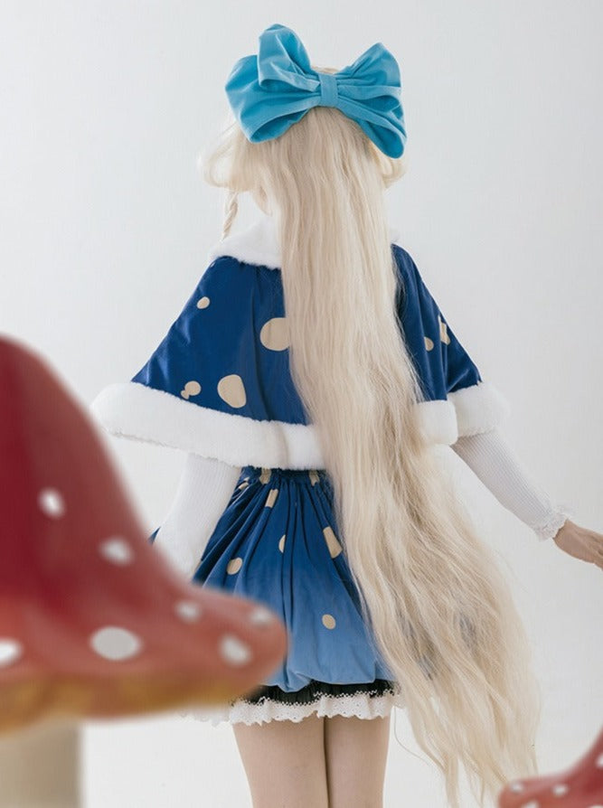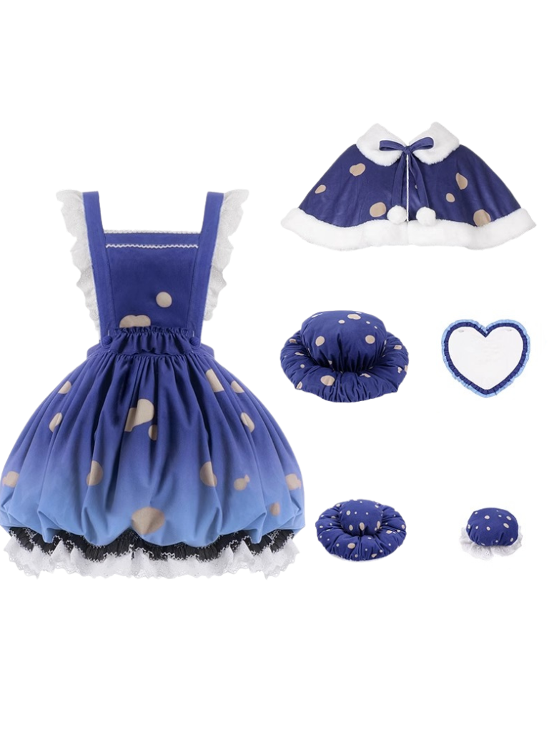 スカート帽子 + 小さな帽子 ハートアクセサリー + 大きなフリル + ケープ マッシュルーム + サスペンダー ファーブローチ帽子