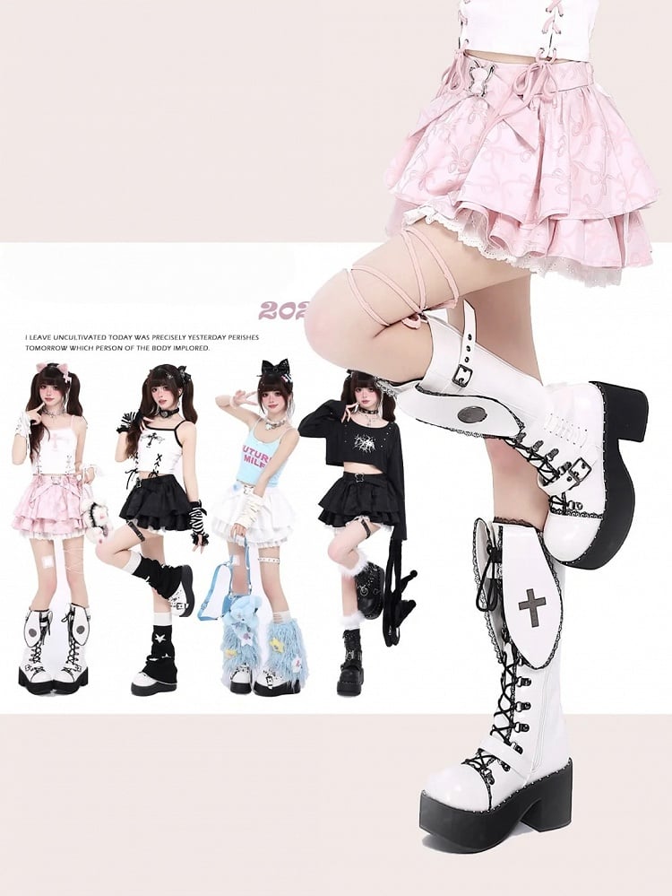 黒と白のオールドスクールロリータファッションドレス蝶結びロリータJSKセット