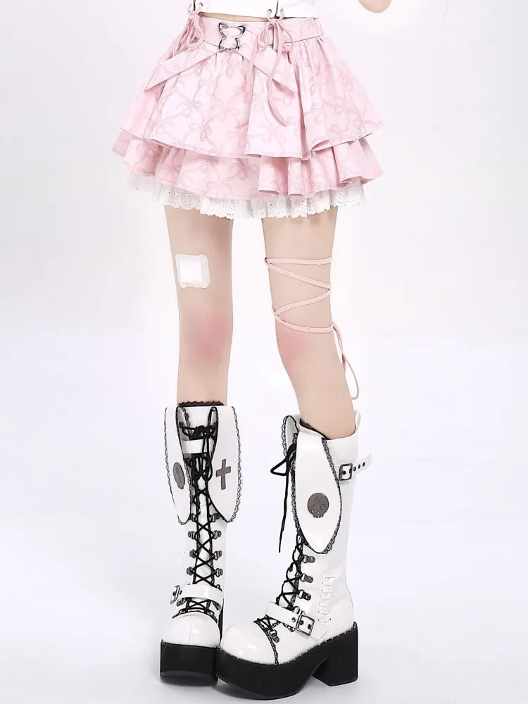 ピンクと白のオールドスクールロリータファッションドレス、蝶結びディテール、ロリータJSKセット