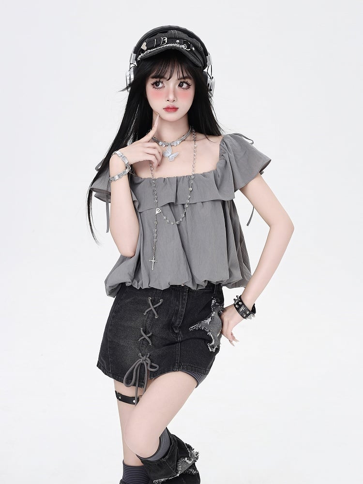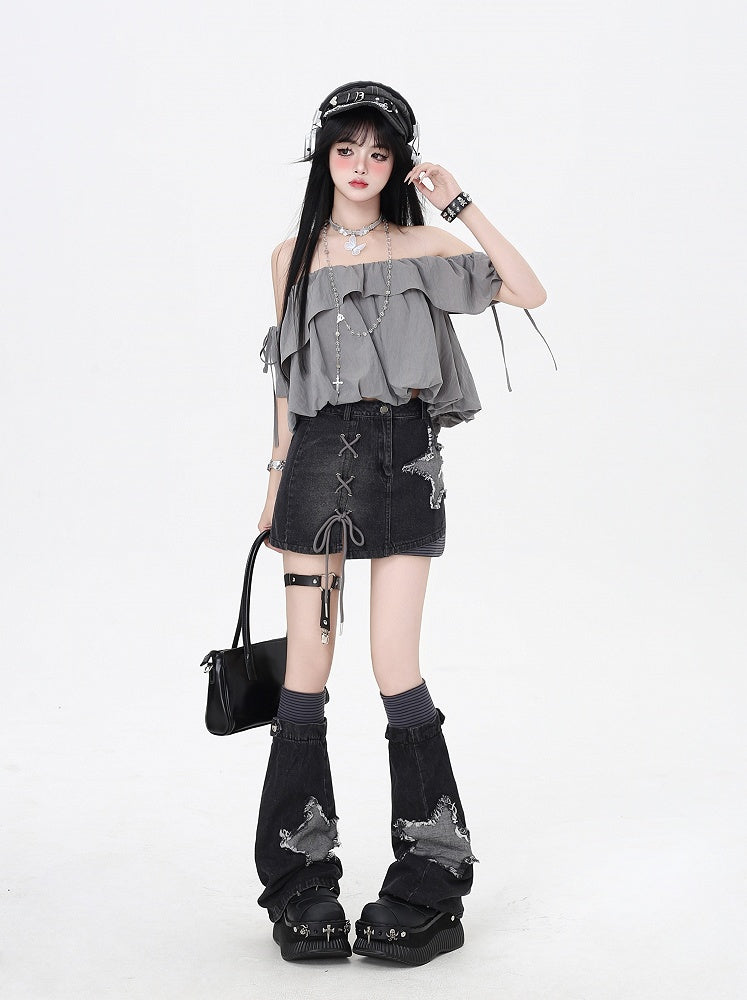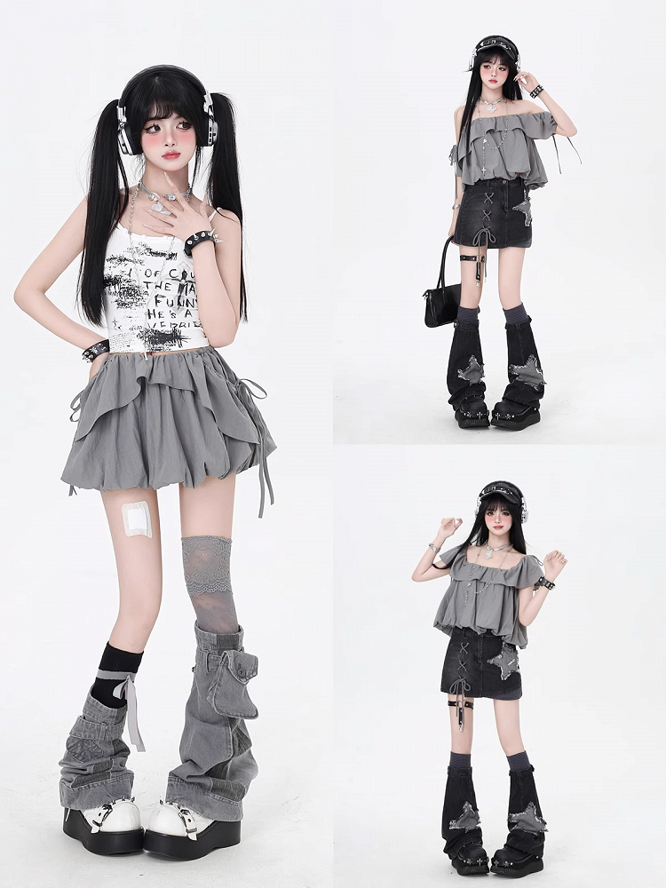 青と白のオールドスクールロリータファッションドレス 蝶結びディテール JSK セット