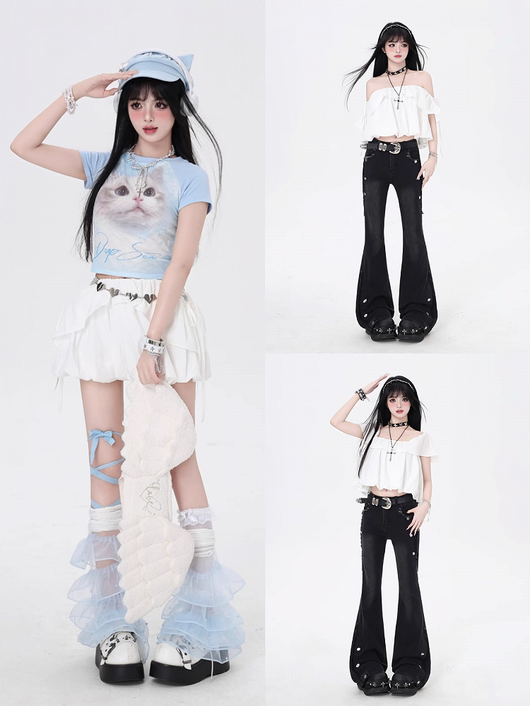 青と白のオールドスクールロリータファッションドレス 蝶結びディテール JSK セット