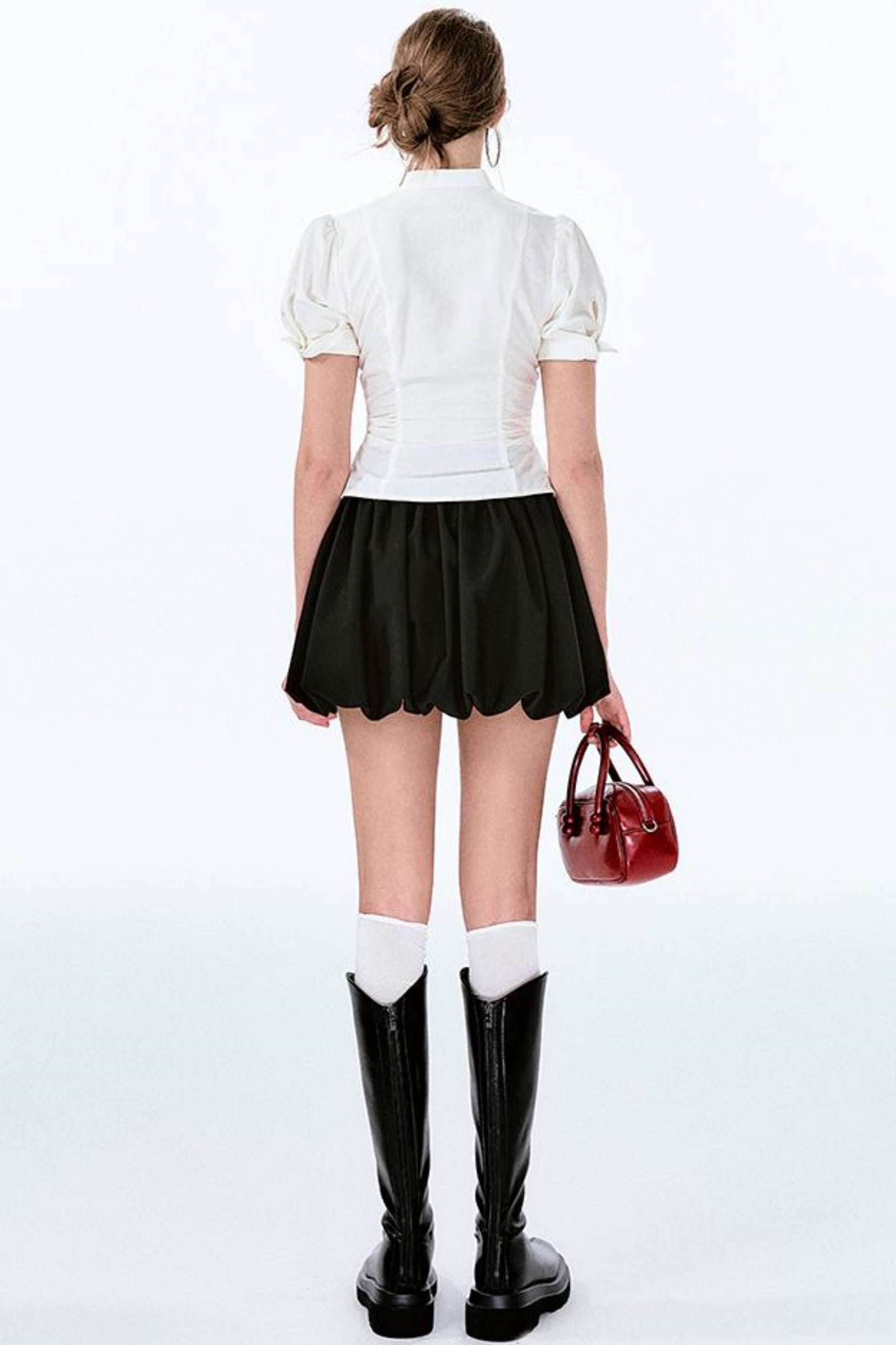 ❤チャームリボンウエストパフスリーブシャツ+バルーンスカート❤
