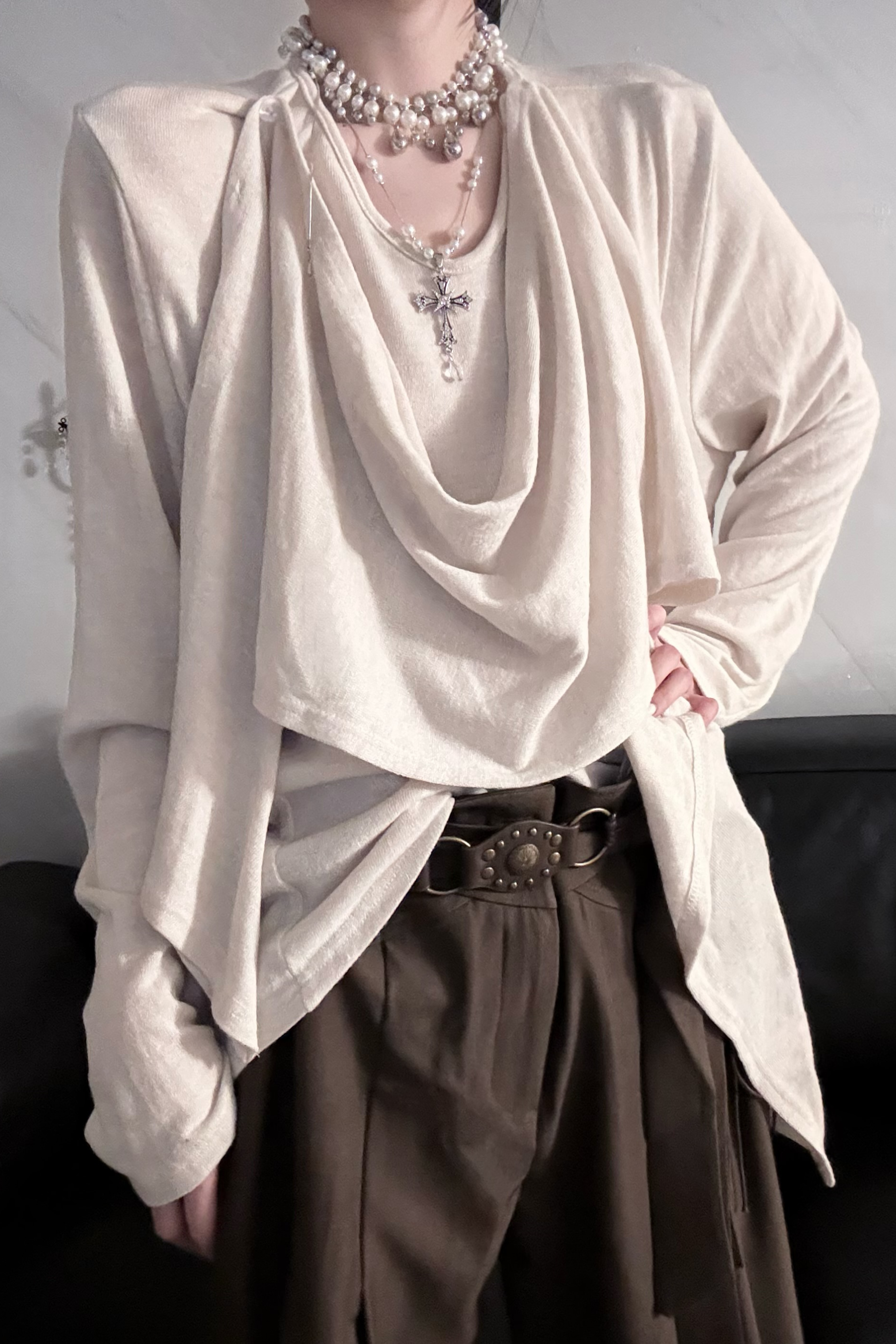 ❤レトロなデコンストラクトロングスリーブトップス❤