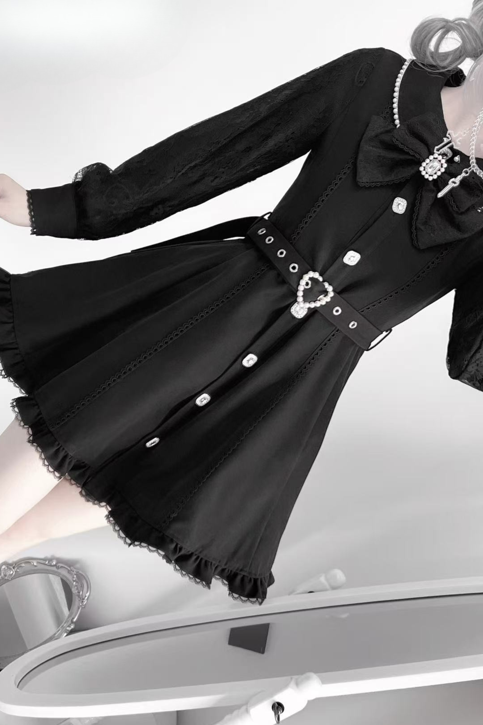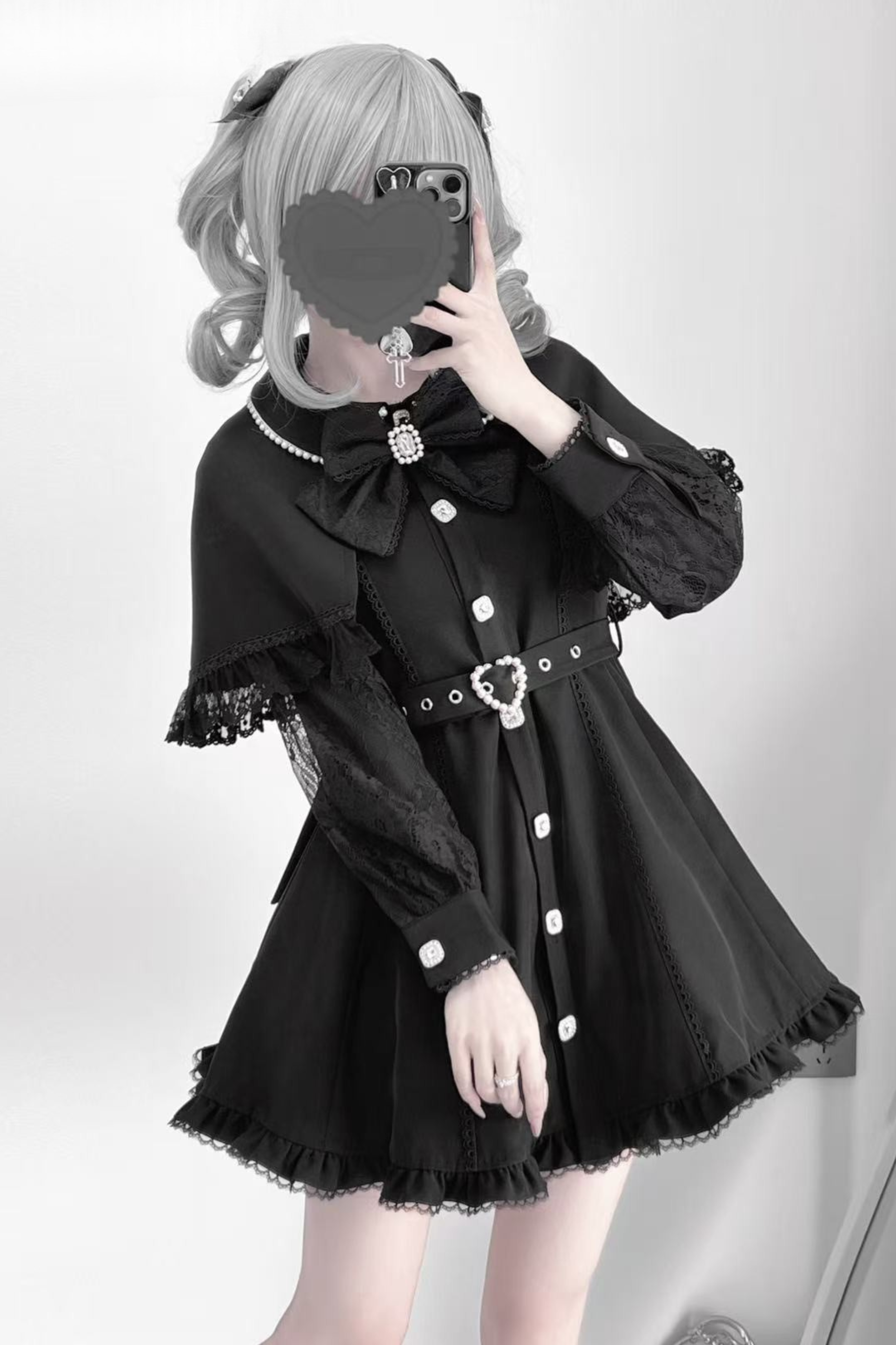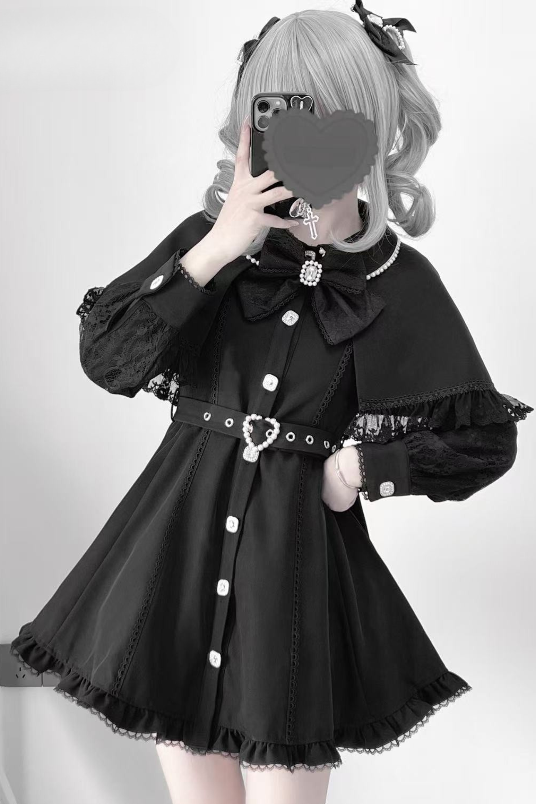 黒と白のオールドスクールロリータファッションドレス蝶結びロリータJSKセット