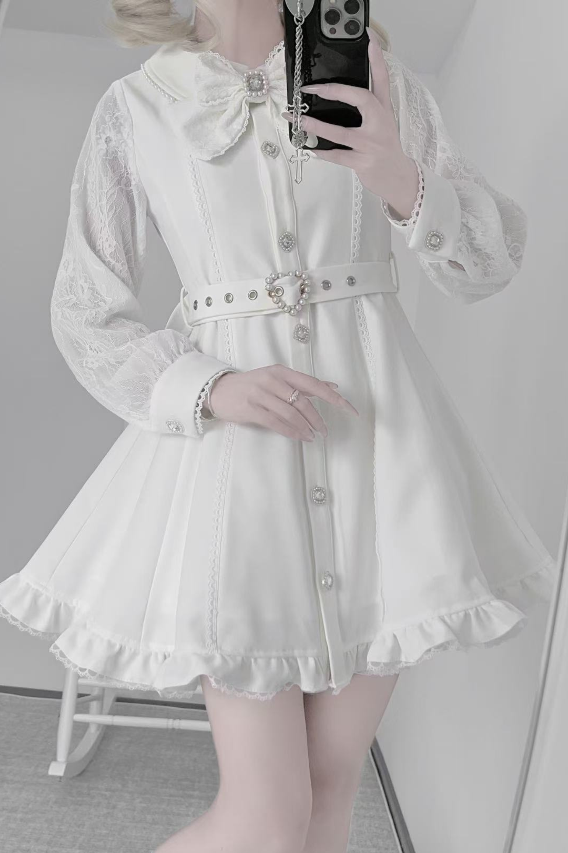 ピンクと白のオールドスクールロリータファッションドレス、蝶結びディテール、ロリータJSKセット