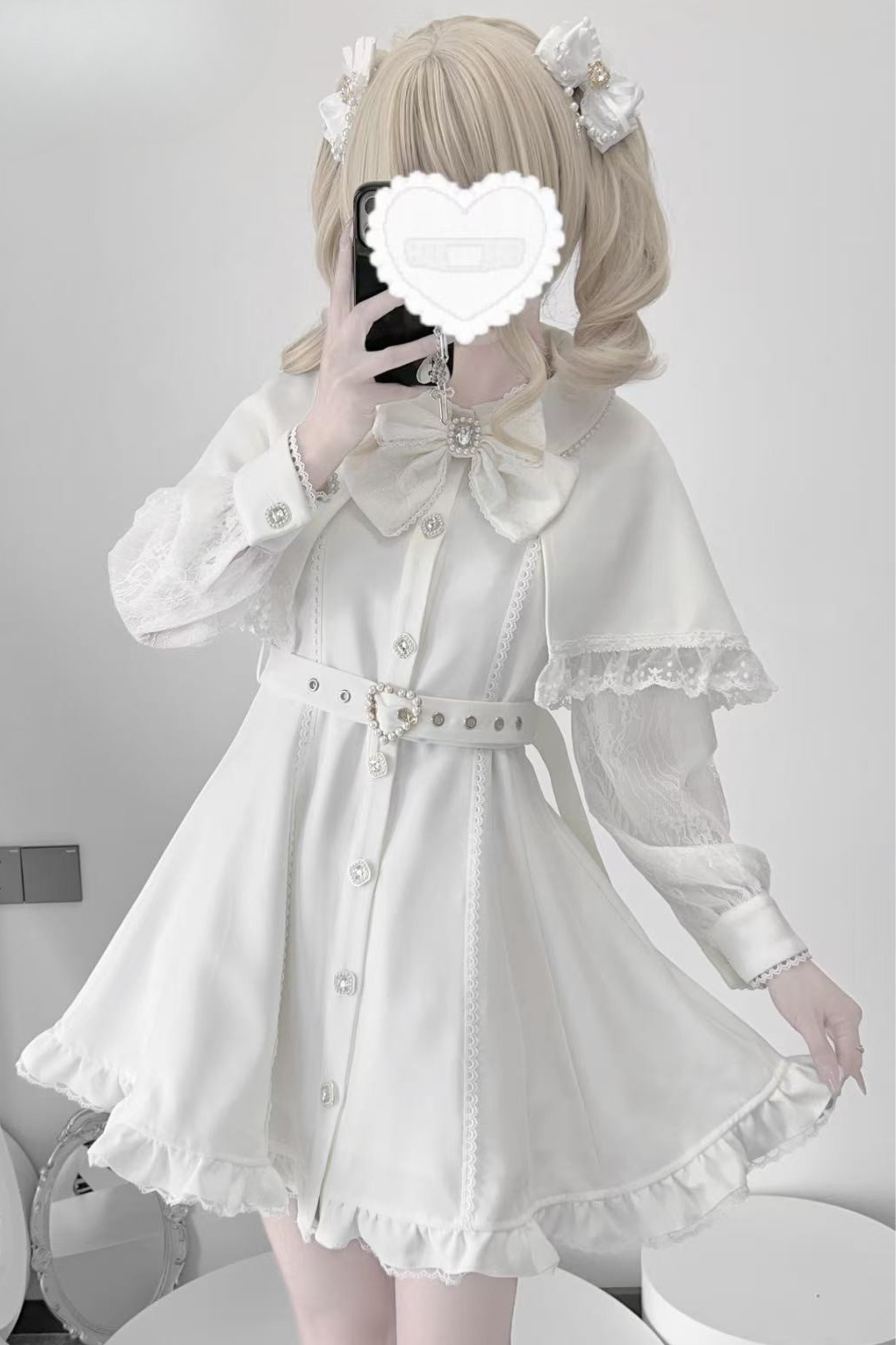 青と白のオールドスクールロリータファッションドレス 蝶結びディテール JSK セット