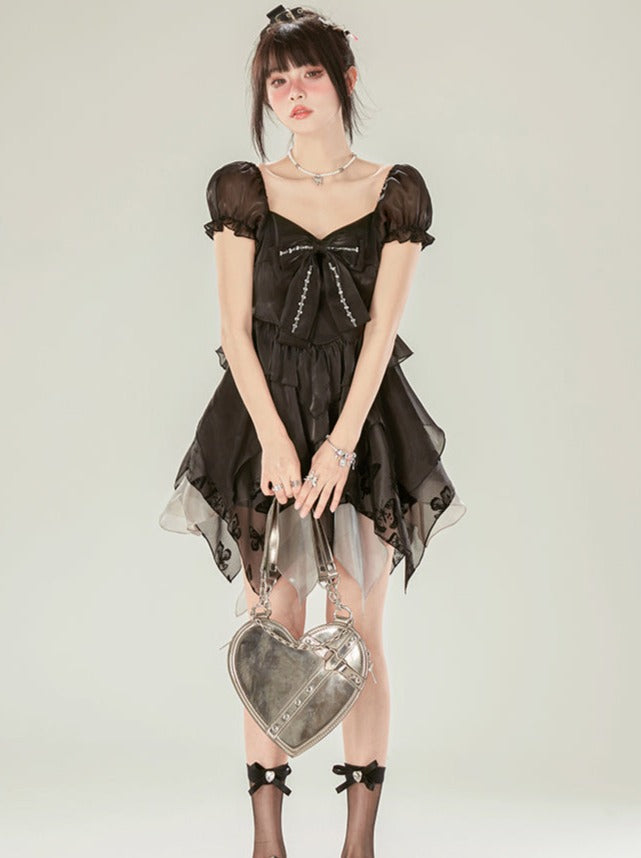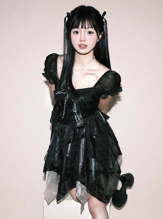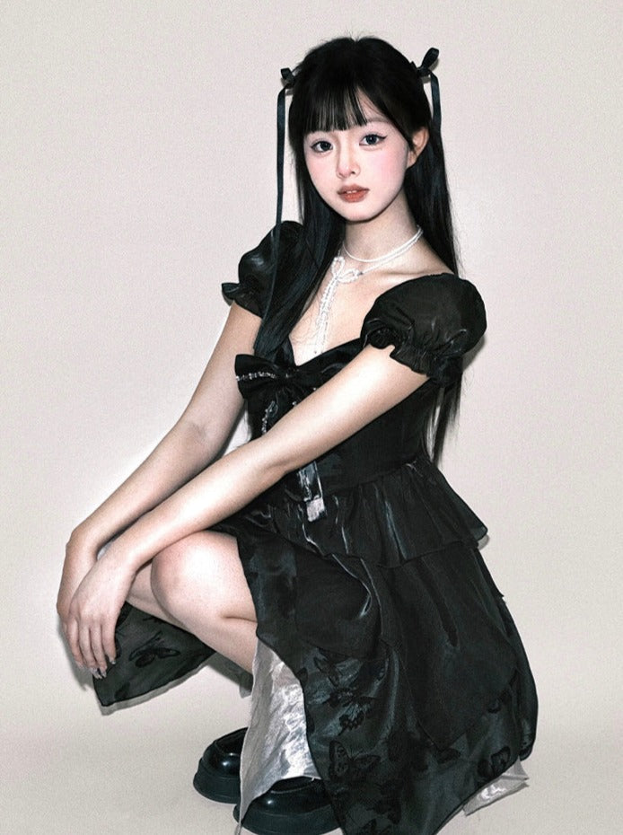 この愛らしいノースリーブのリボン付きブラックパフリボンドレスは、ワードローブに欠かせないアイテムです。スタイリッシュなデザインと快適なフィット感で、見た目も気分も最高に素敵に。ノースリーブのデザインとパフリボンドレスがエレガントな雰囲気を添え、どんなシーンにもぴったりです。