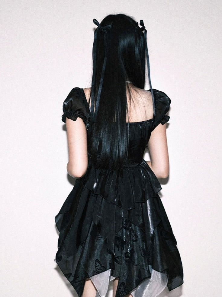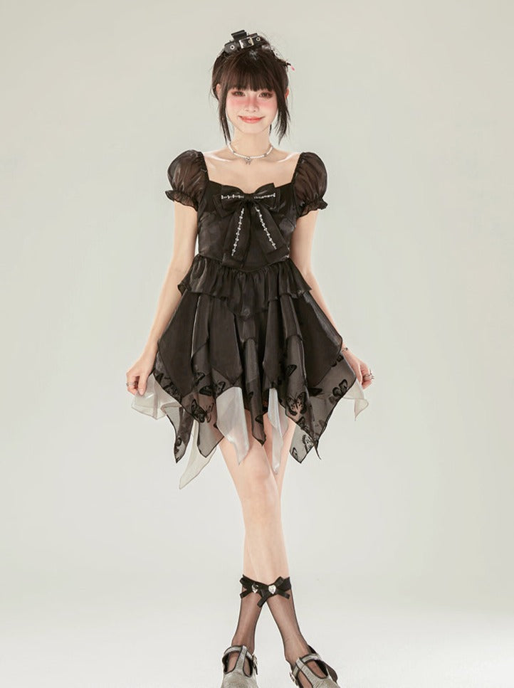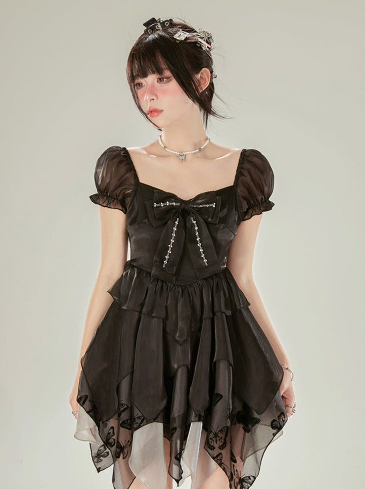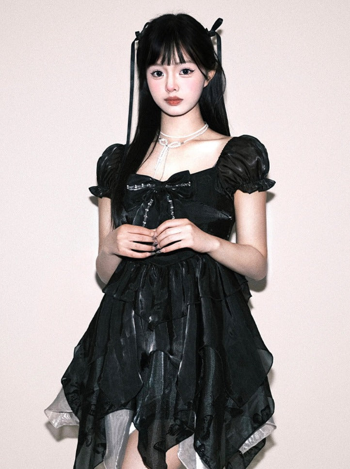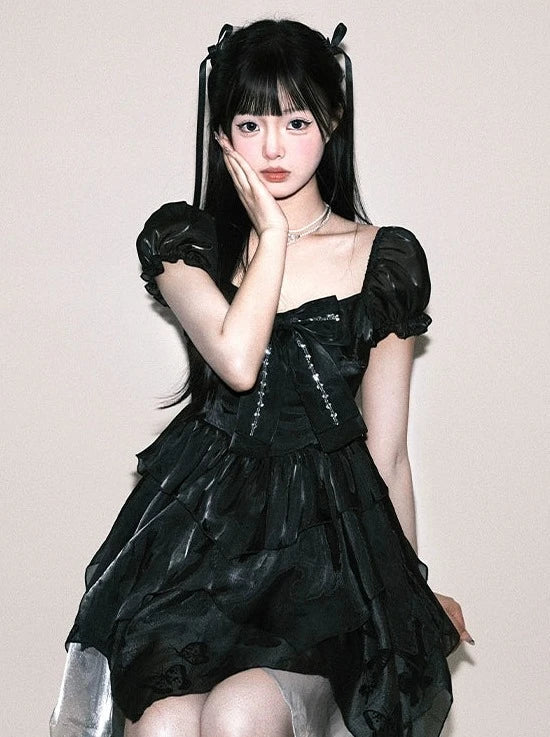 黒と白のオールドスクールロリータファッションドレス蝶結びロリータJSKセット