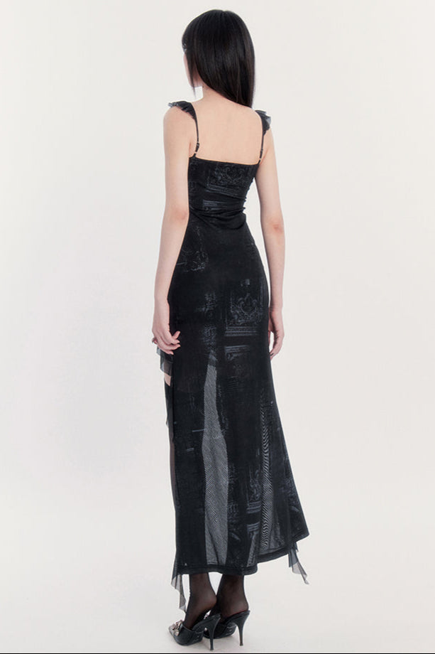 ❤ロマンティックなダークアシメダマキシノースリーブドレス❤