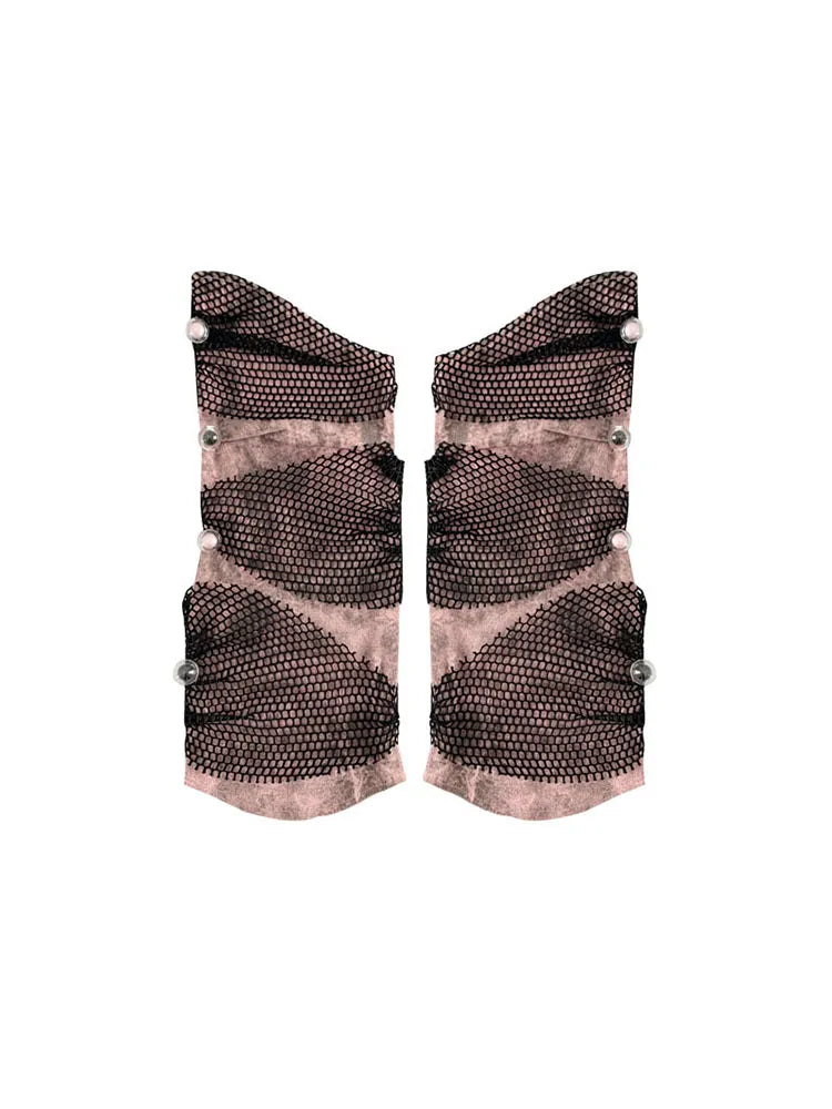 パンクなブラックとピンクのメッシュパッチデニムレッグスリーブ