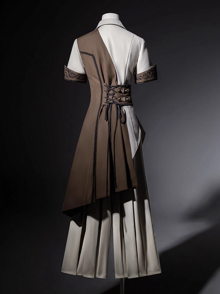 スチームパンク王子 ロリータ 3点セット - 半袖シャツ + ワンショルダーロングベスト + ストレートレッグパンツ
