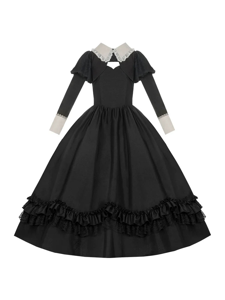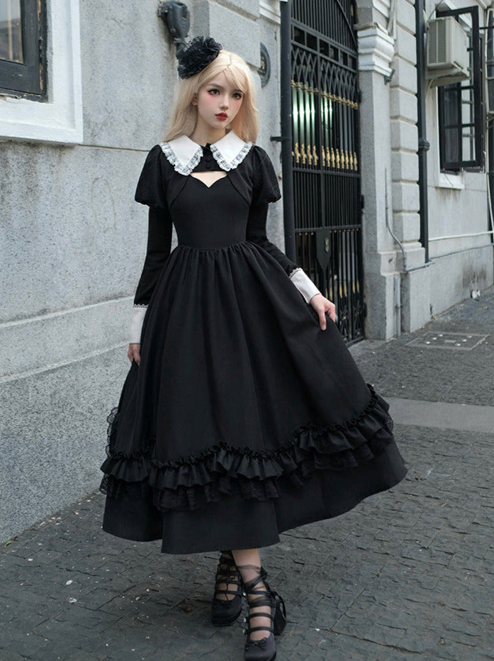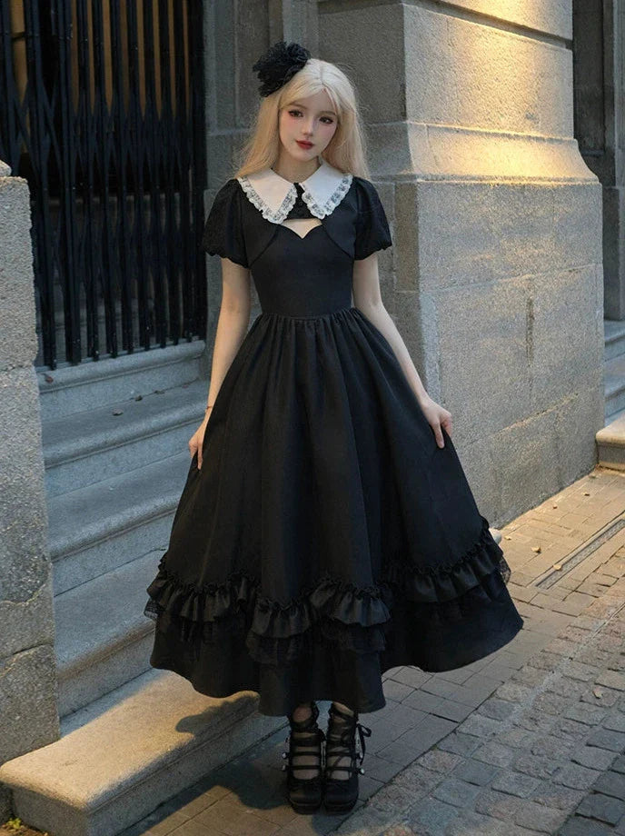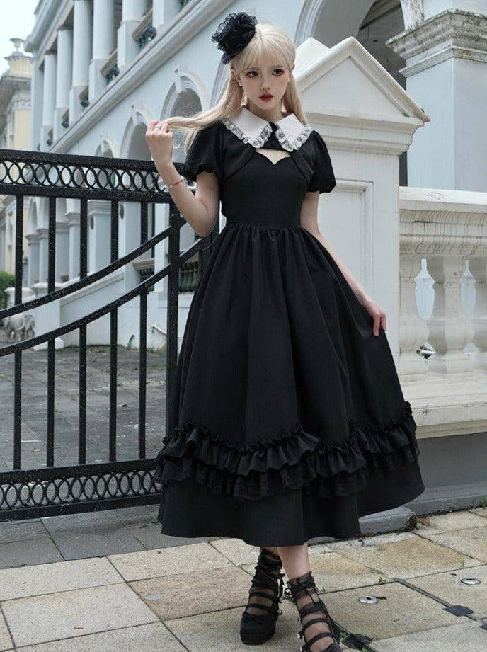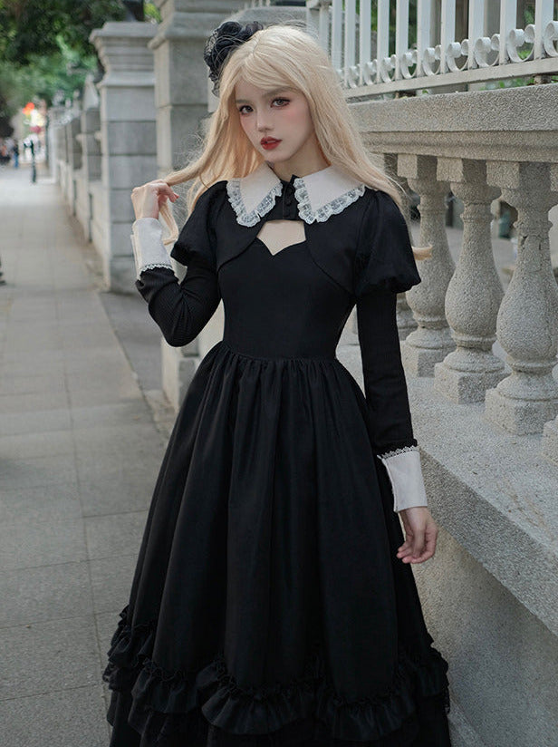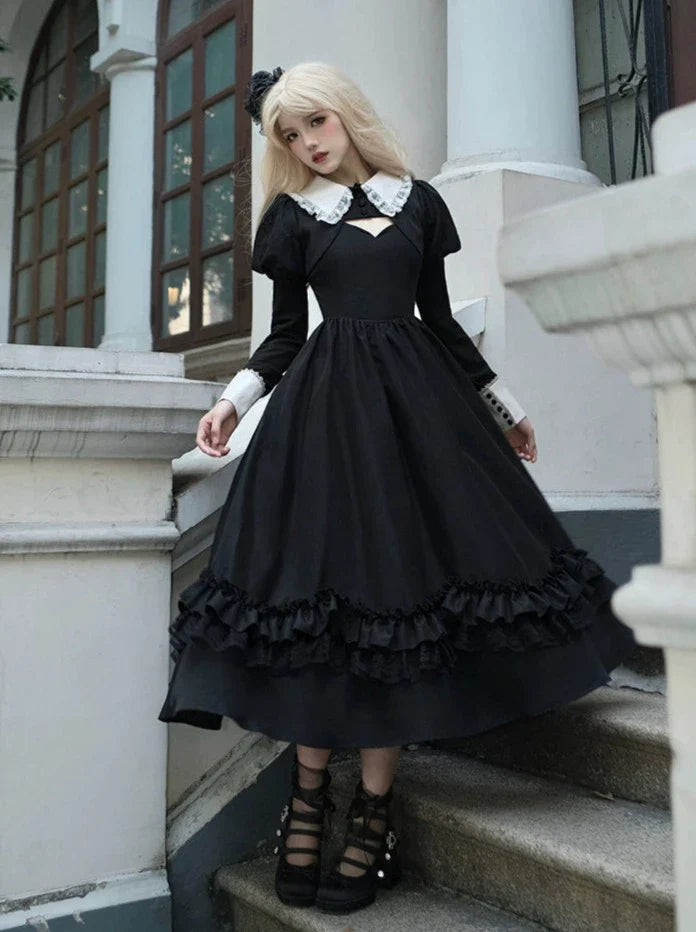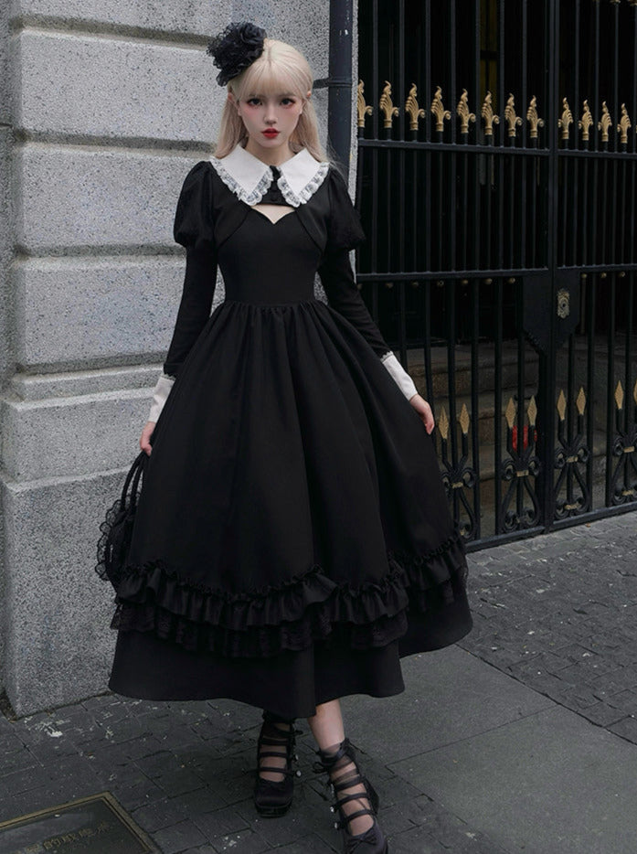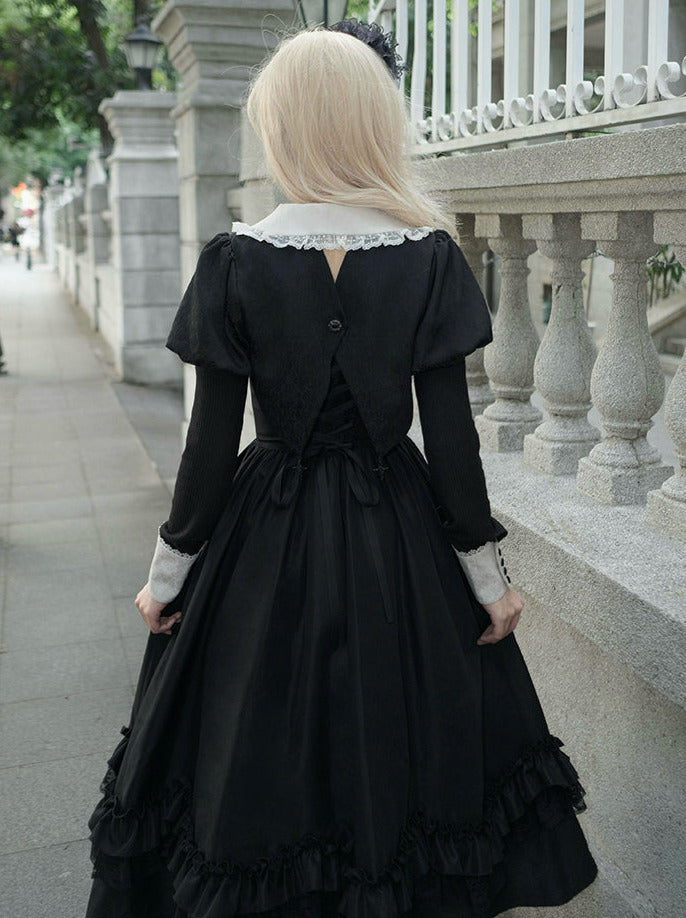 黒と白のオールドスクールロリータファッションドレス蝶結びロリータJSKセット