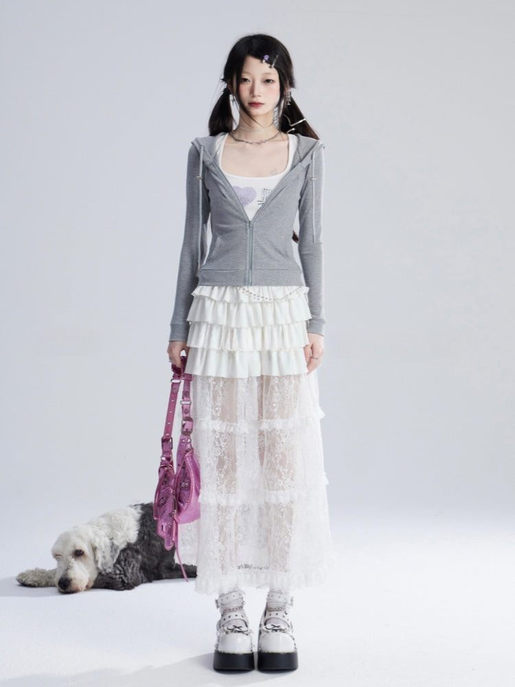 Black/Gray/Red Zip Closure Slim-fitting Hooded Top