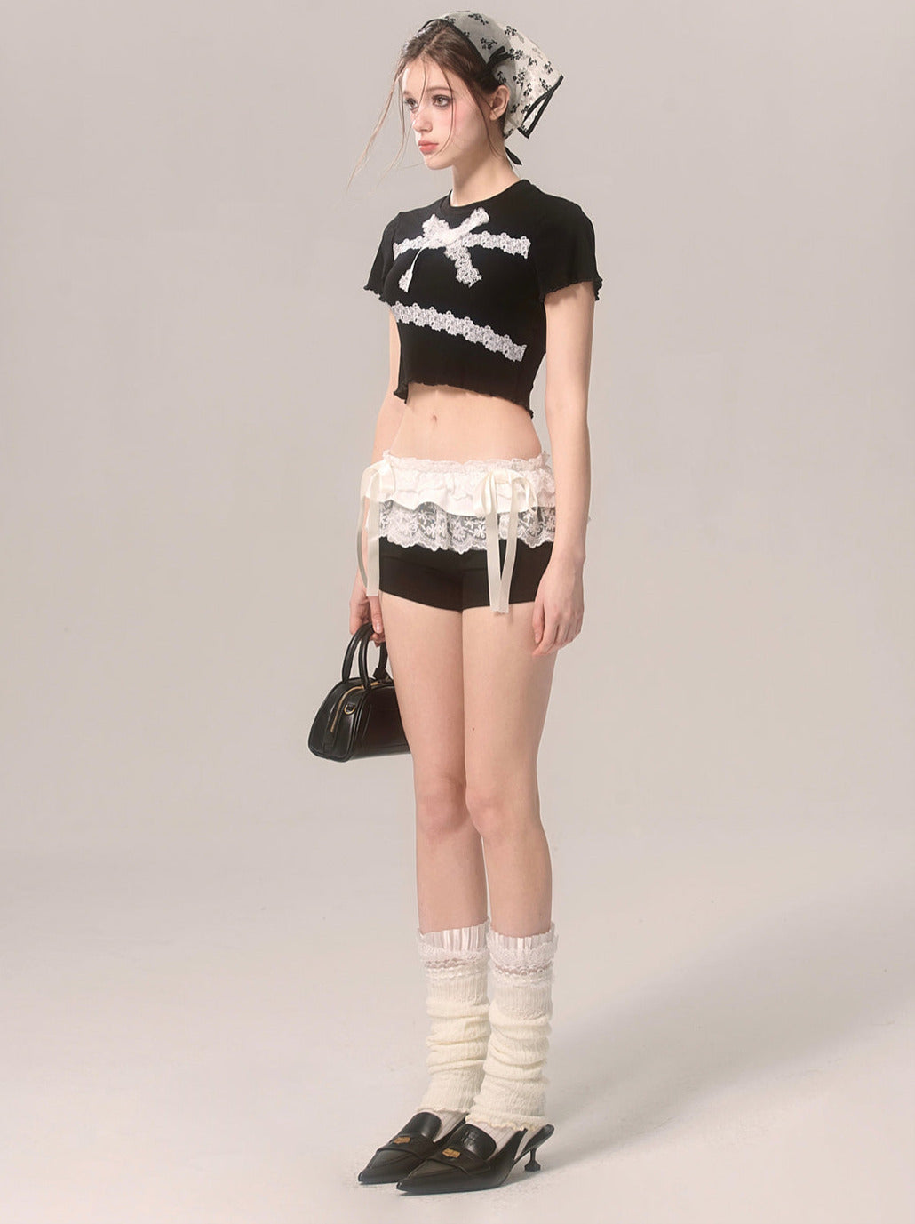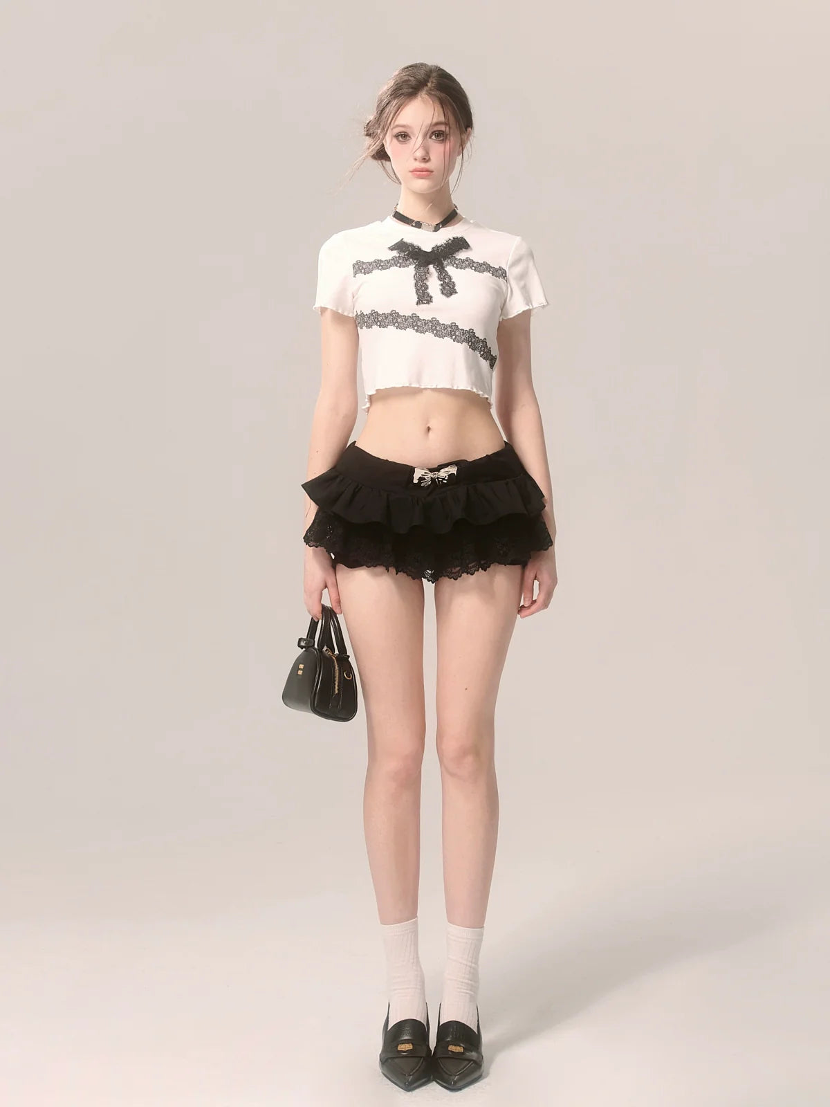 スリムレースTシャツ フリル ショートリボン