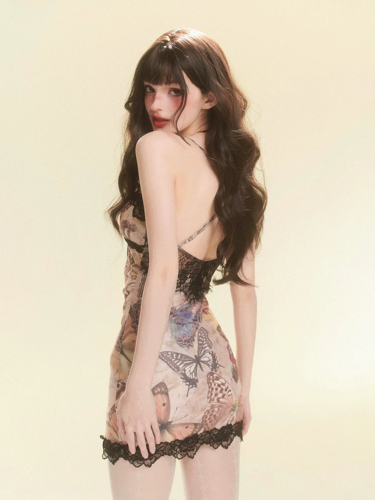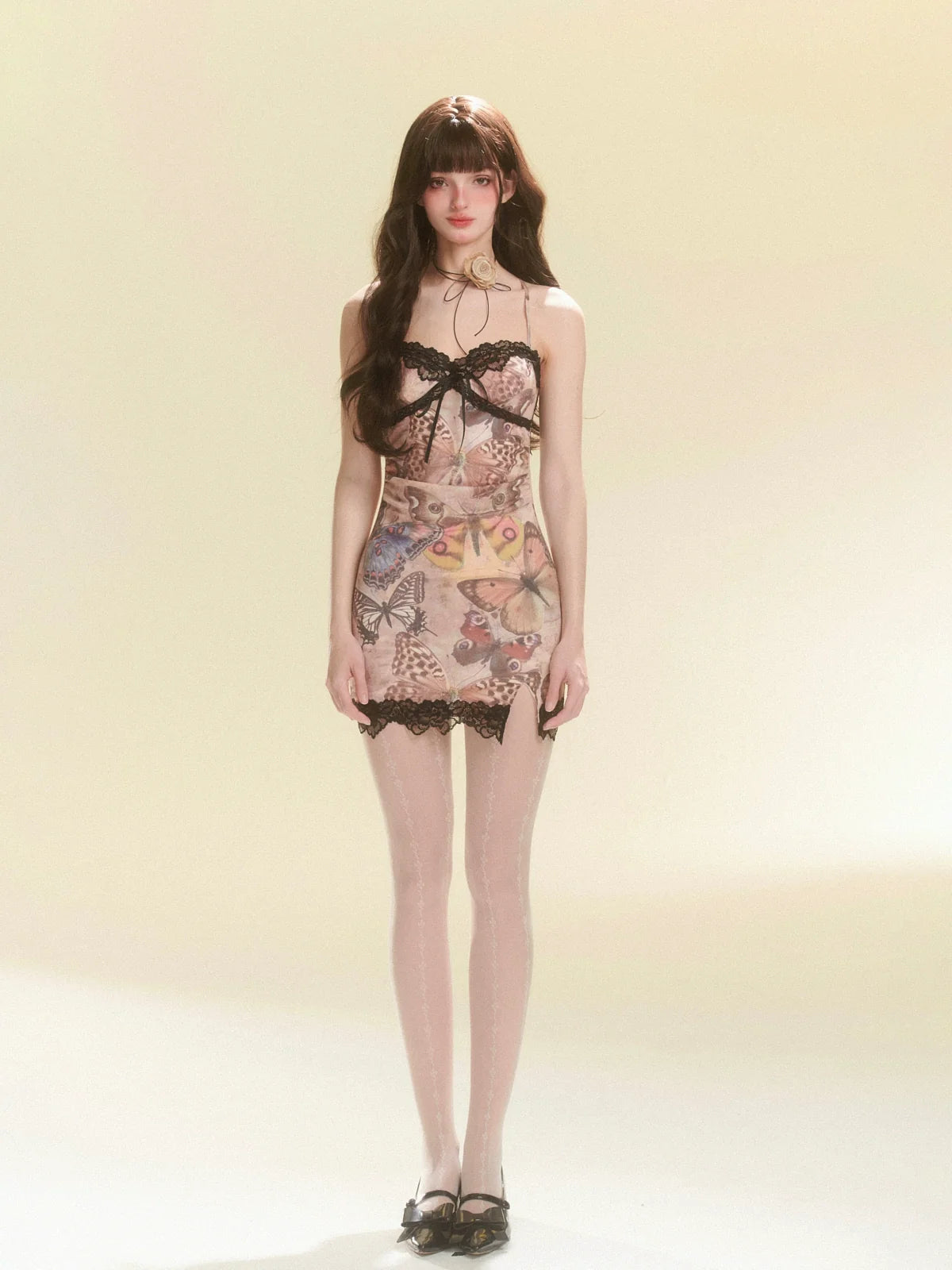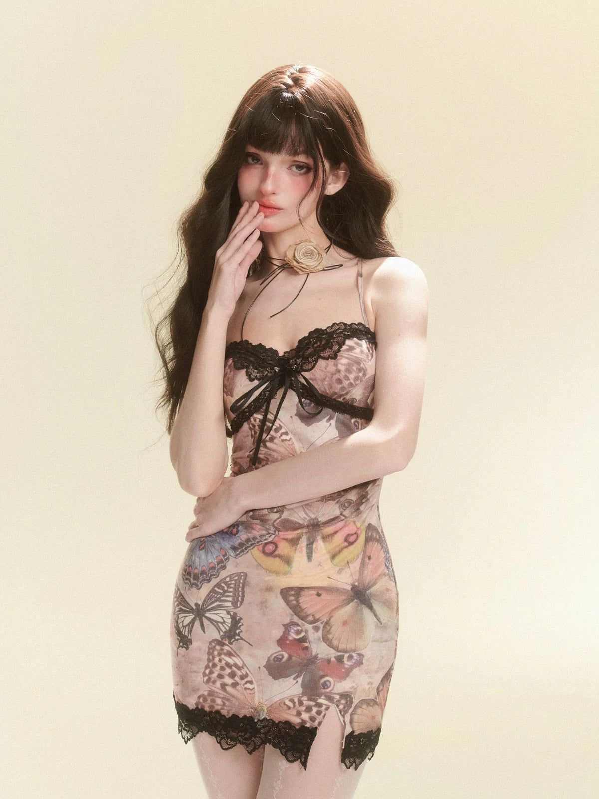 スタイリッシュなスリットデザインと透け感のある生地が特徴の、可愛らしいバタフライショートドレス。ワードローブにキュートなアクセントを添えるのにぴったりです。