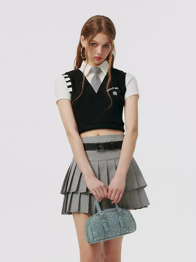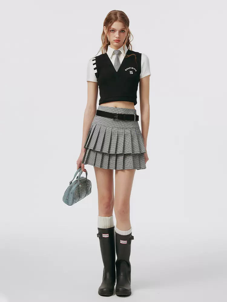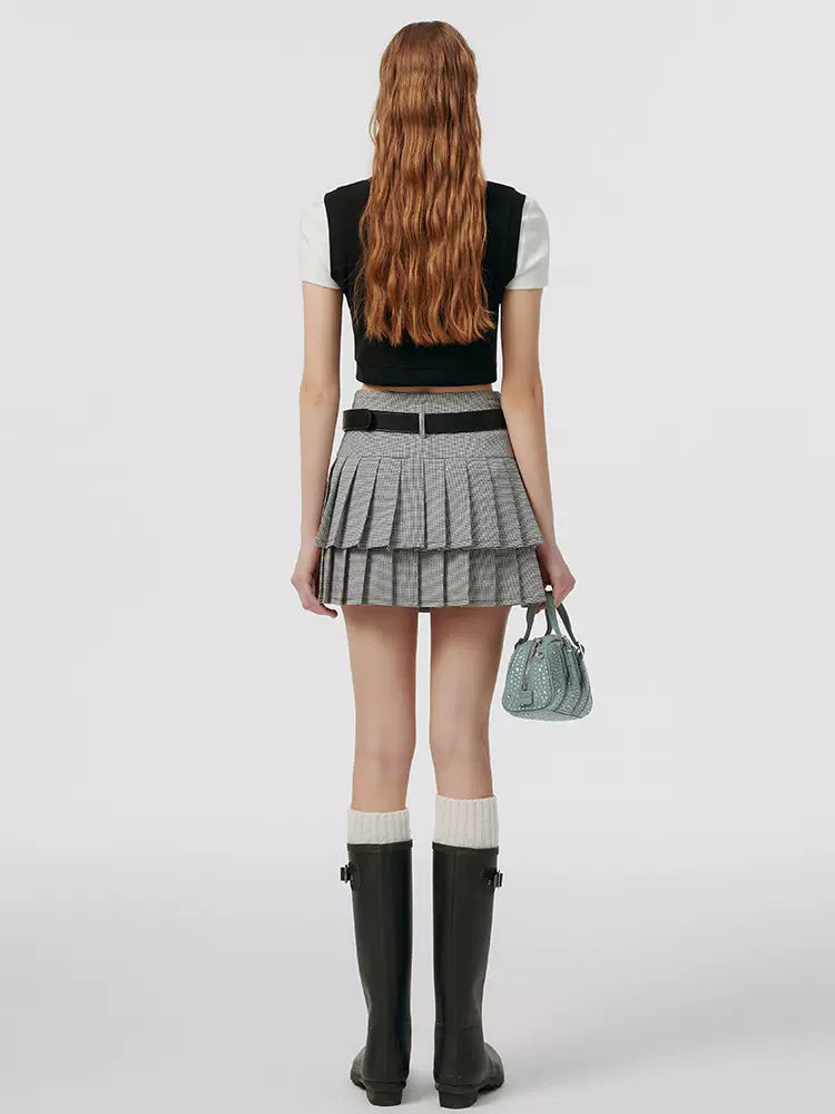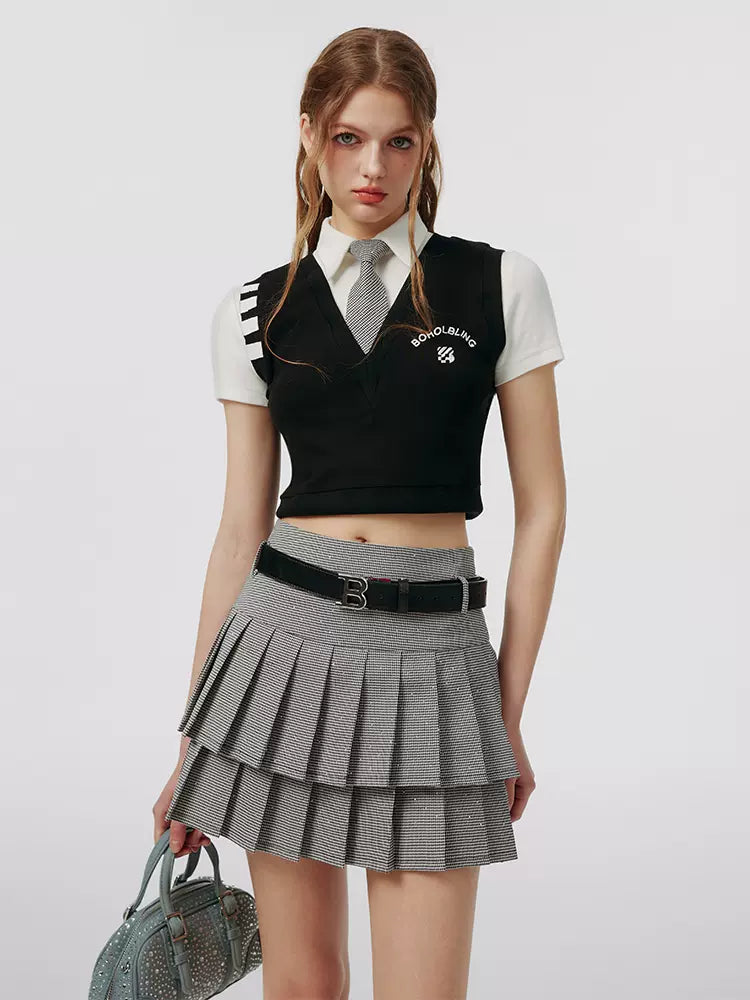 スモールグレースカート フェイク + プリーツ ツーピーストップ アメリカンカレッジタイ