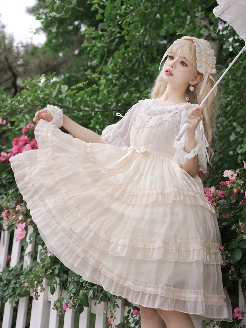 ピンクと白のオールドスクールロリータファッションドレス、蝶結びディテール、ロリータJSKセット