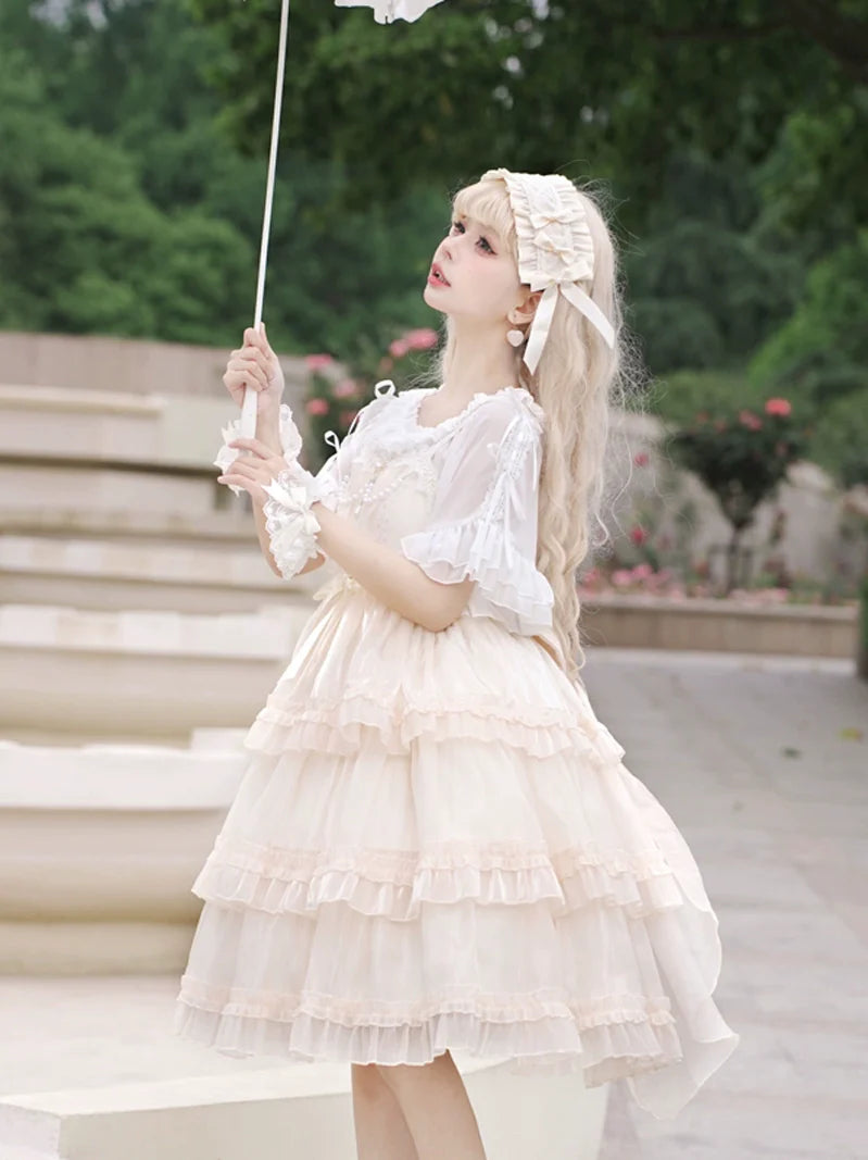 青と白のオールドスクールロリータファッションドレス 蝶結びディテール JSK セット
