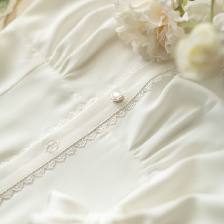 スタンドカラー長袖レトロホワイトシャツ