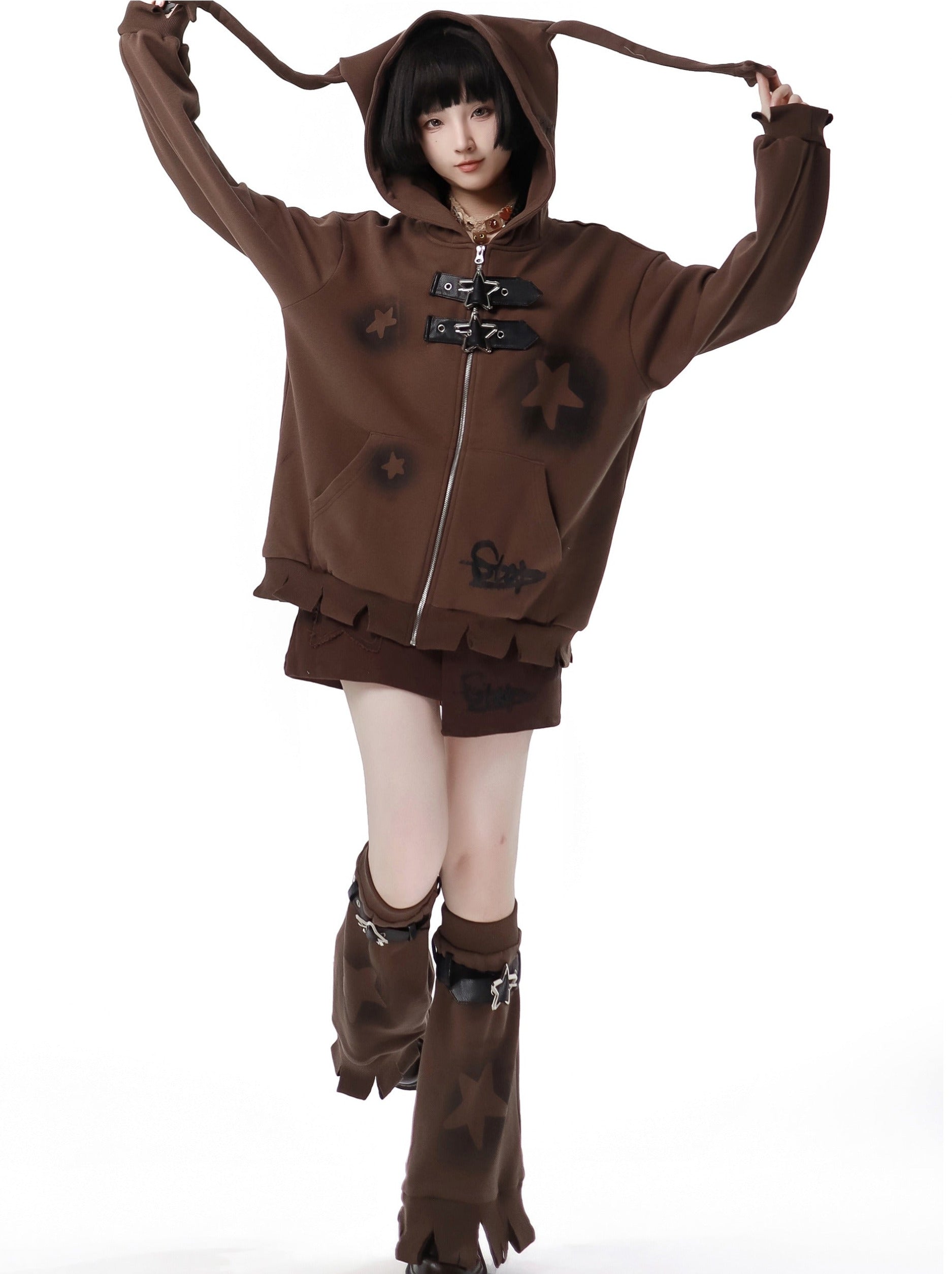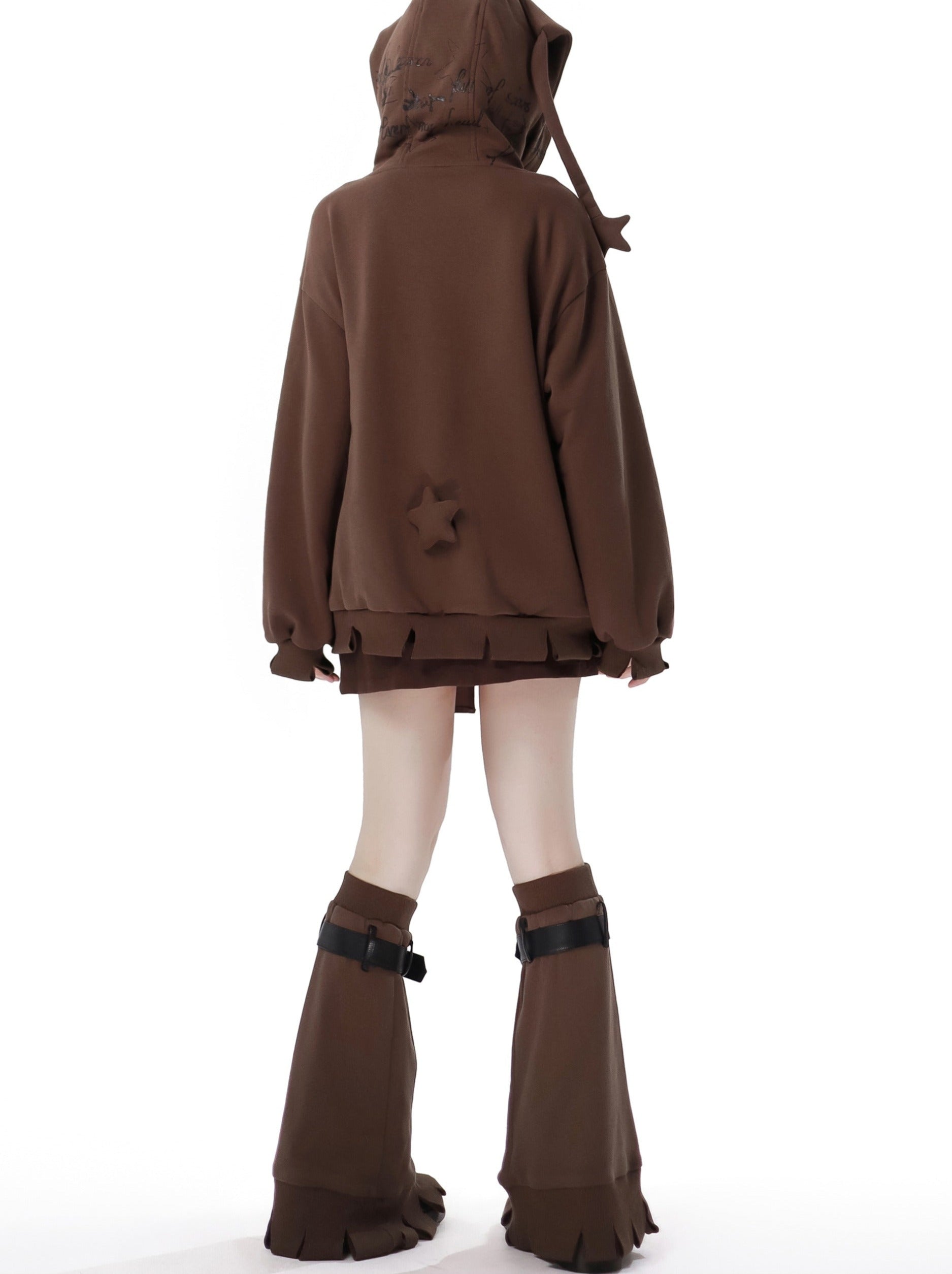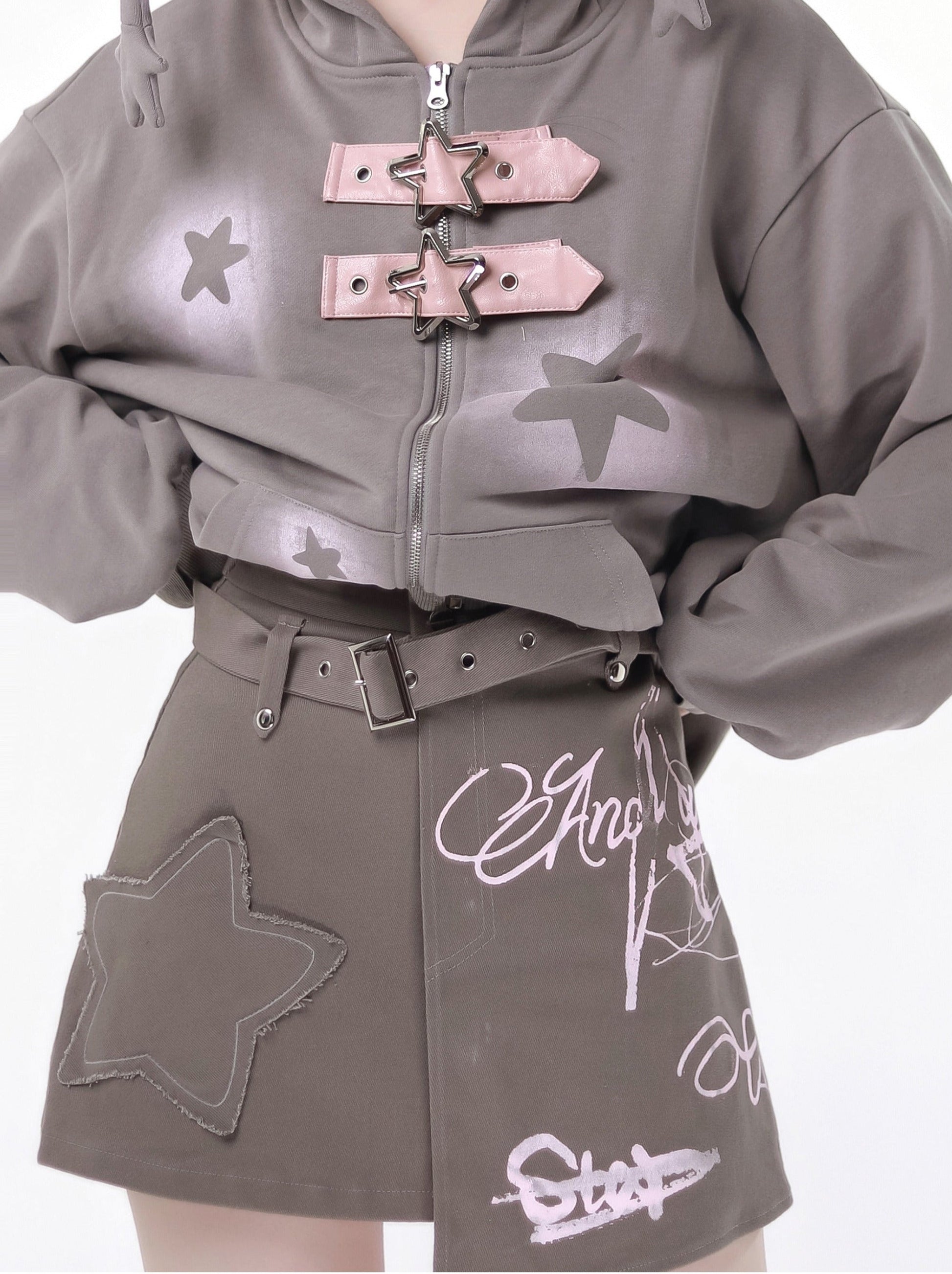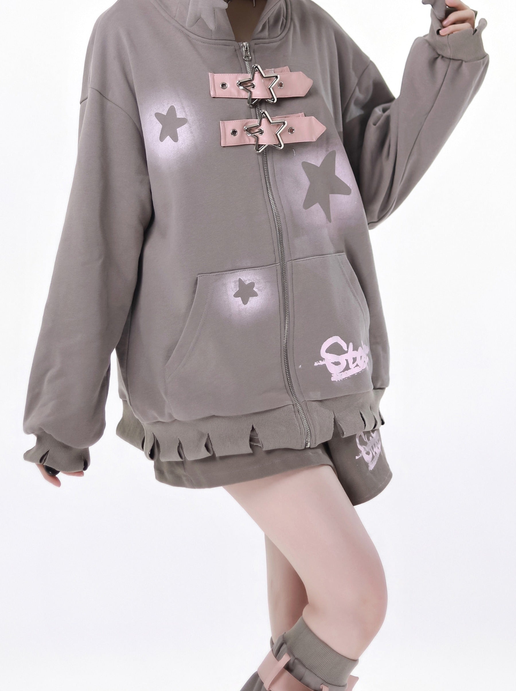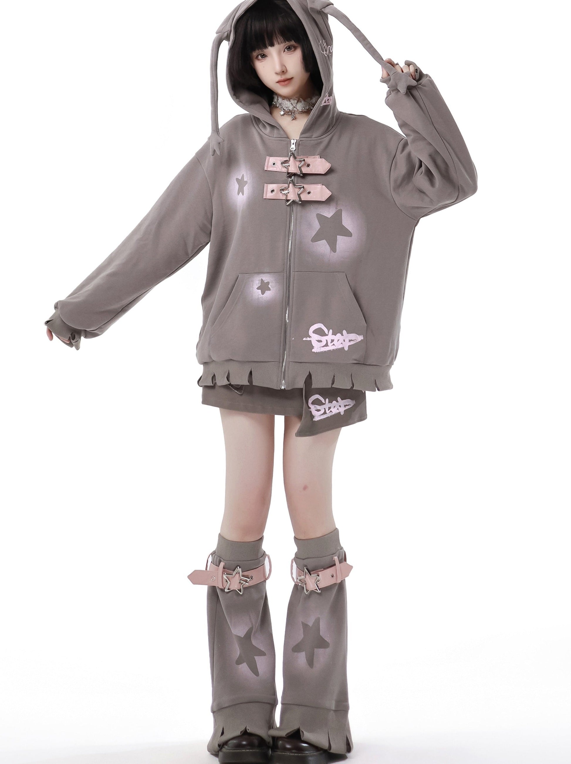 スターアメリカンプリント ルーズジップパーカー + イレギュラースカート + レッグウォーマー