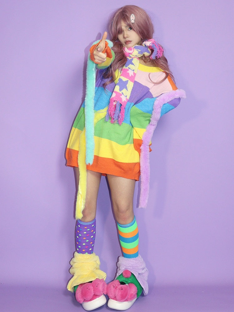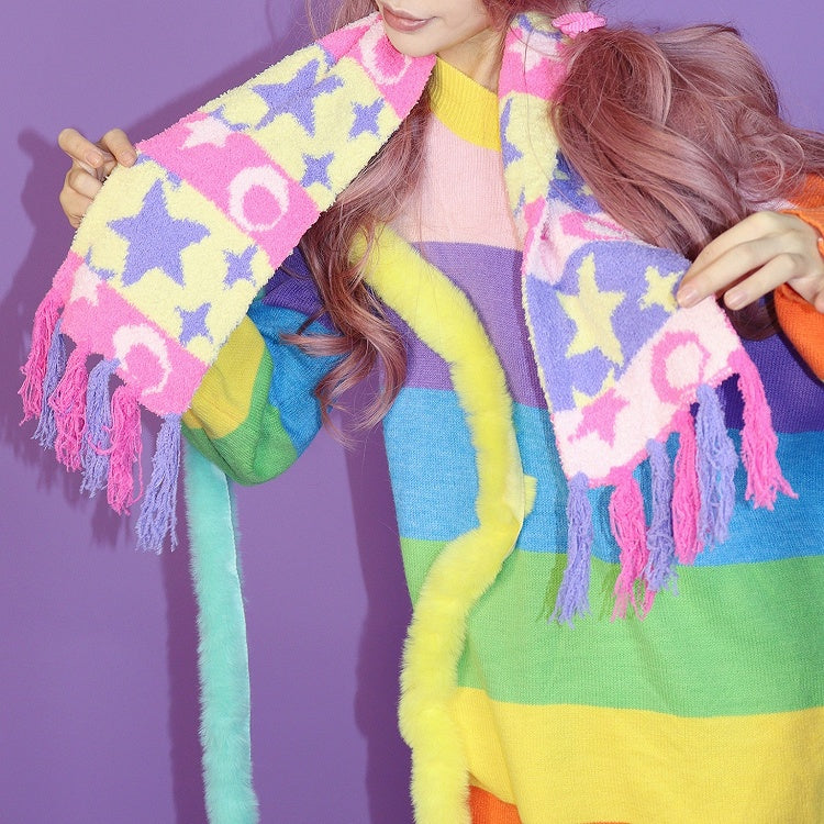星とカラフルな月のストライプ柄スカーフ Y2K