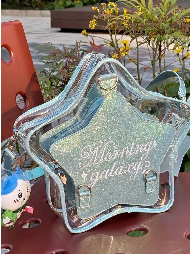取り外し可能なバッジチャーム付き、ブルーPU星型痛バッグセット