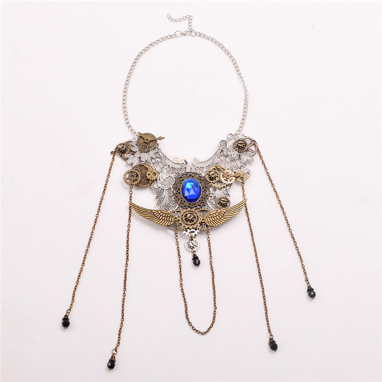 この愛らしいスチームパンク・ギア・クロック・ウィング・ネックレスは、スチームパンクファッションを愛するすべての方にぴったりのアクセサリーです。精巧な歯車と時計のディテールがどんな装いにも個性的なアクセントを添え、翼のデザインが遊び心を加えます。スチームパンクへの愛を表現し、装いに魅力的なアクセントを添えるネックレスです。