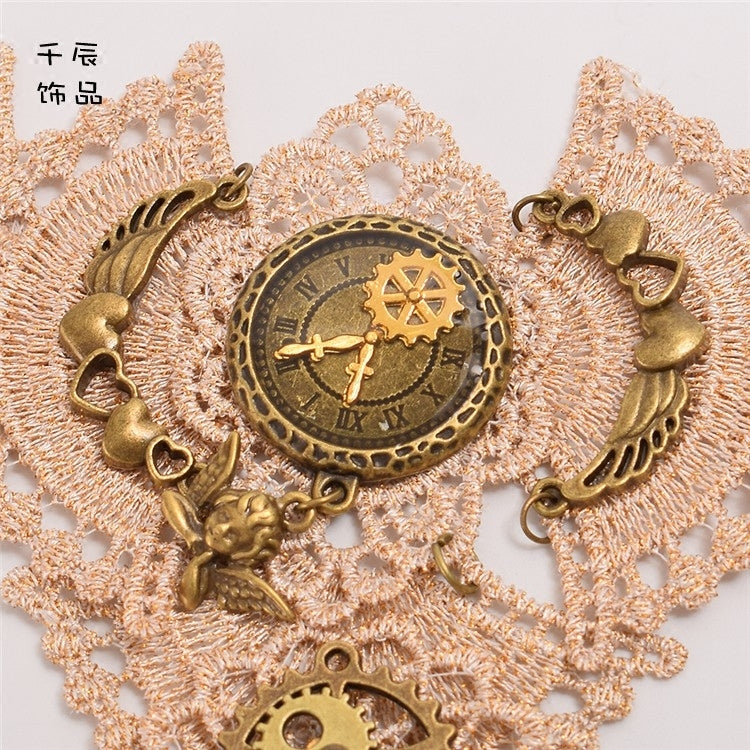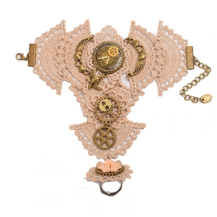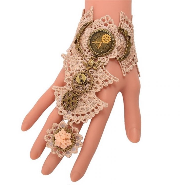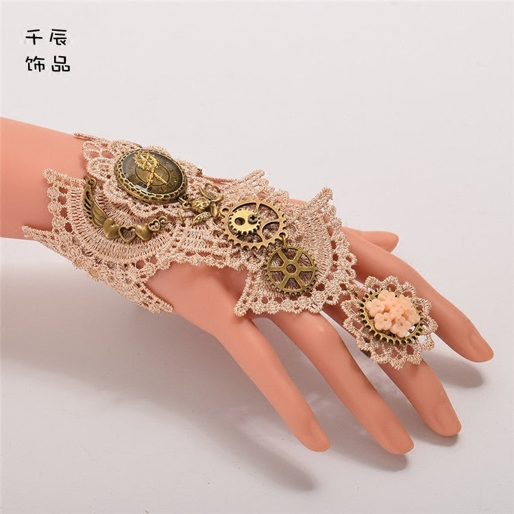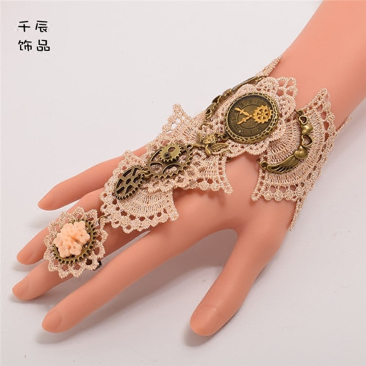 スチームパンクゴシックレースギアクロックフィンガーリングレースブレスレット