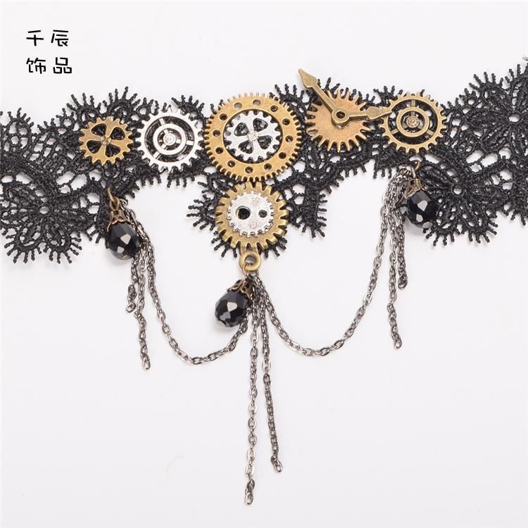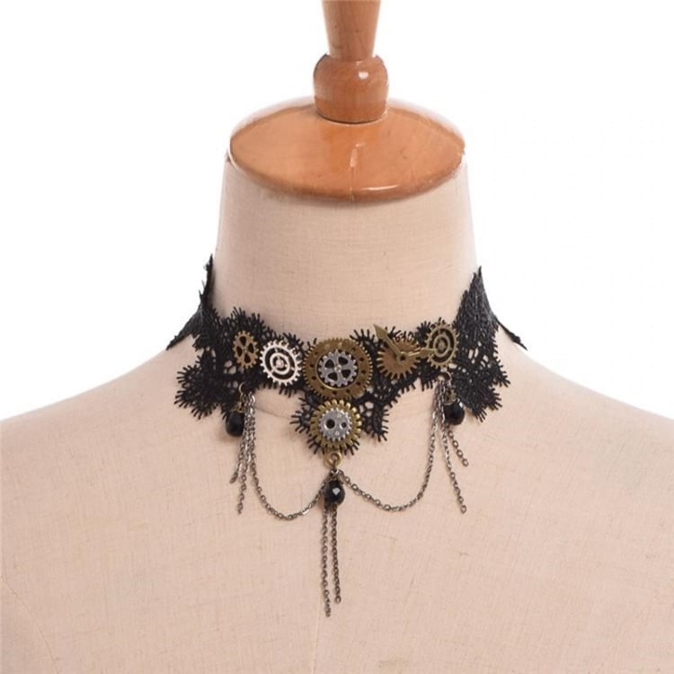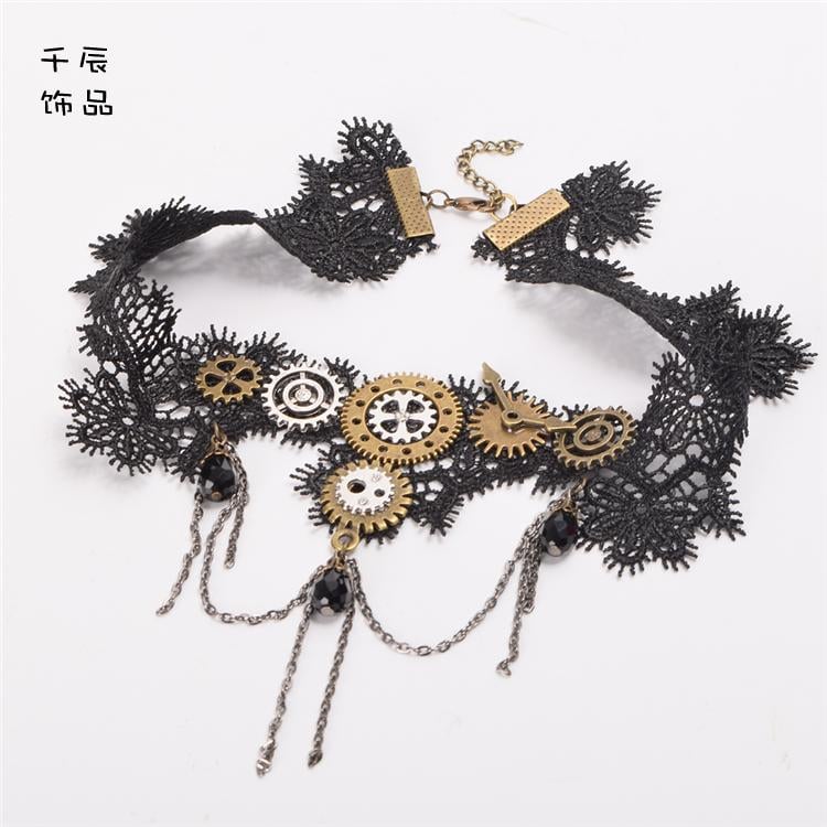 スチームパンク ロリータ タッセルギア ブラック レース チョーカー