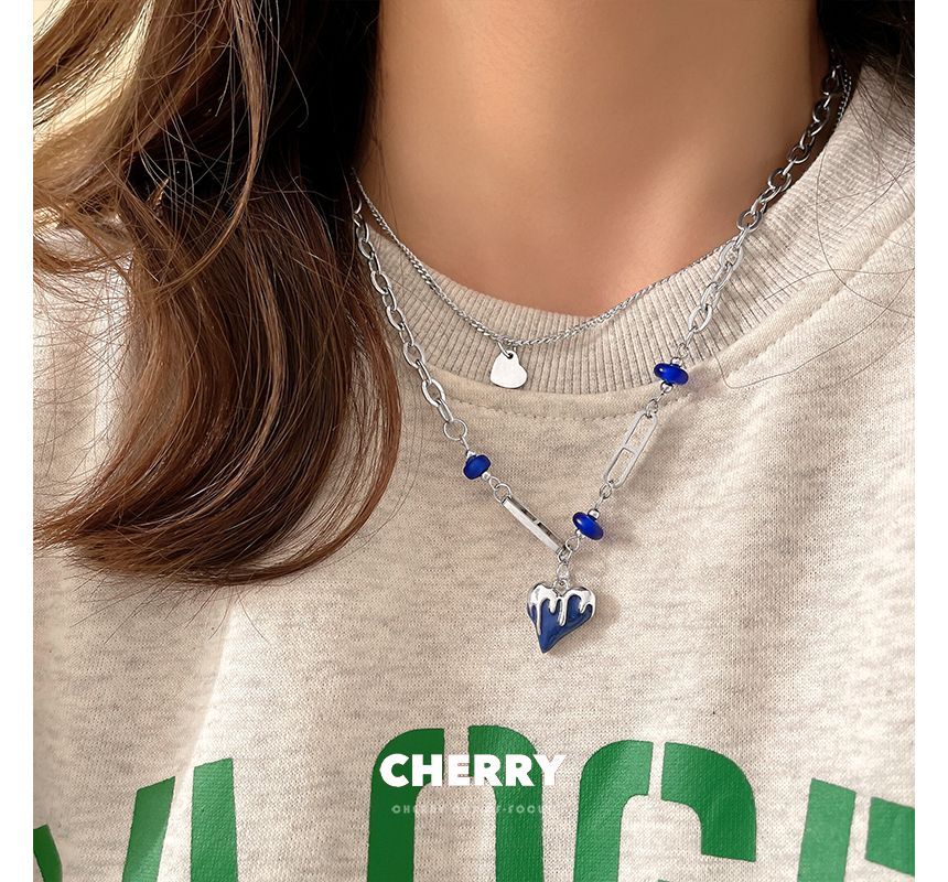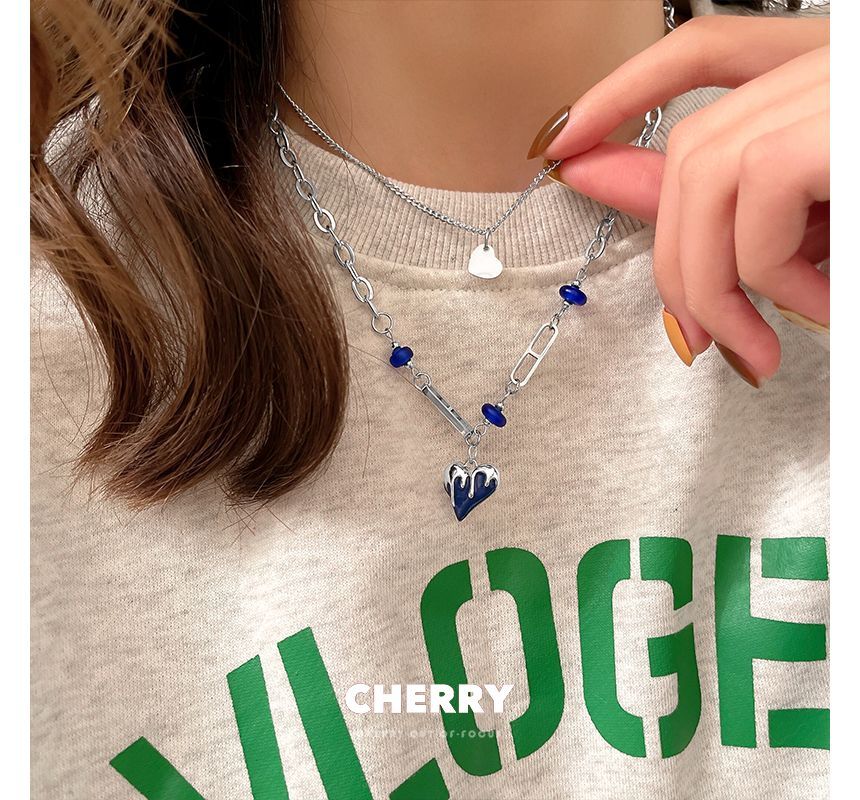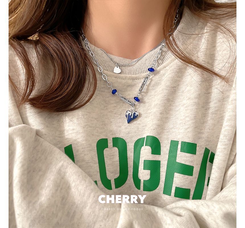 ハートグレーズペンダントレイヤードステンレススチールネックレス