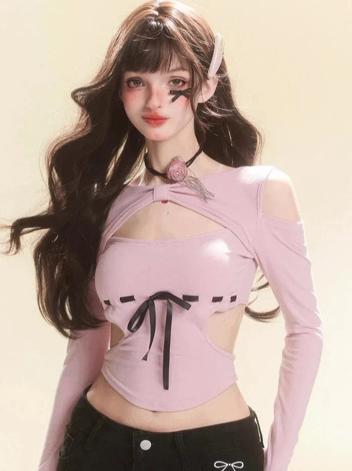 ステッチリボンガーリートップで、スタイリッシュさと魅力を融合させましょう!繊細なステッチとキュートなリボンのディテールが特徴の、愛らしいトップス。どんなコーディネートにもキュートなアクセントを添えてくれます。このチャーミングなトップスで、スタイルをワンランクアップさせましょう。