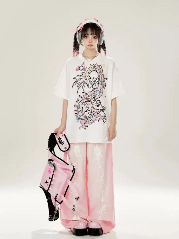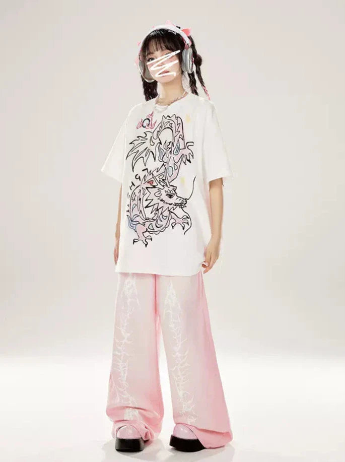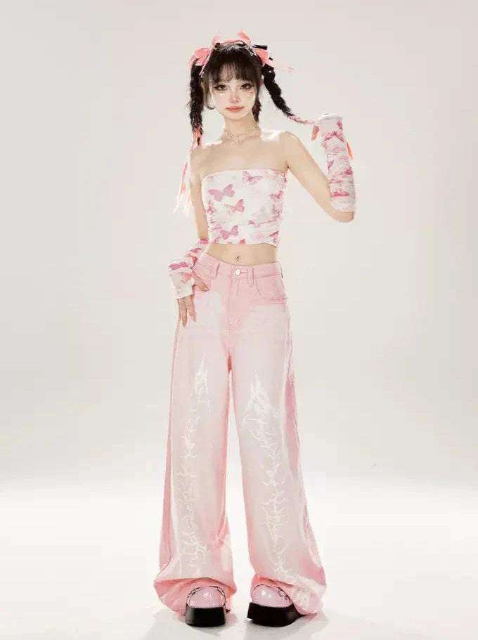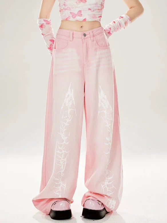 ストレートルーズドラゴンピンクワイドエレメントデニムで、おとぎ話の世界へ足を踏み入れてみませんか?柔らかく上質なデニム素材を使用した、愛らしいこのデニムは、ワードローブに遊び心をプラス。ゆったりとした快適なフィット感と鮮やかなピンクのドラゴン刺繍が、キュートで着回し力抜群のアイテムです。