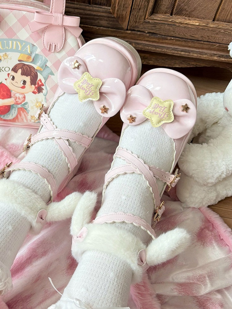 Strap with Pink Lolita - PU Detachable Sweet Puppy Mary Plush Ear Platform Janes Velcro Starry Ankle Theme