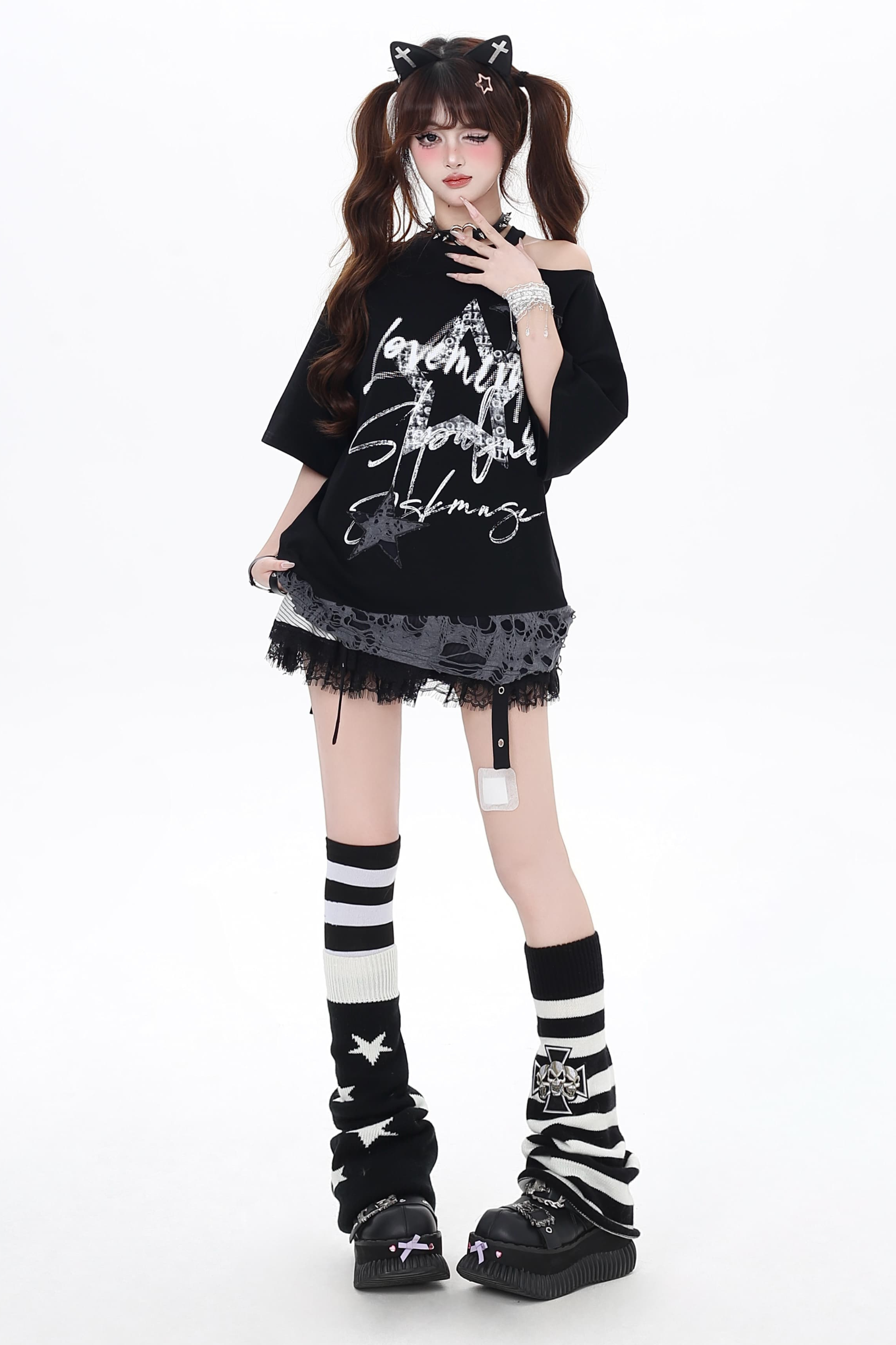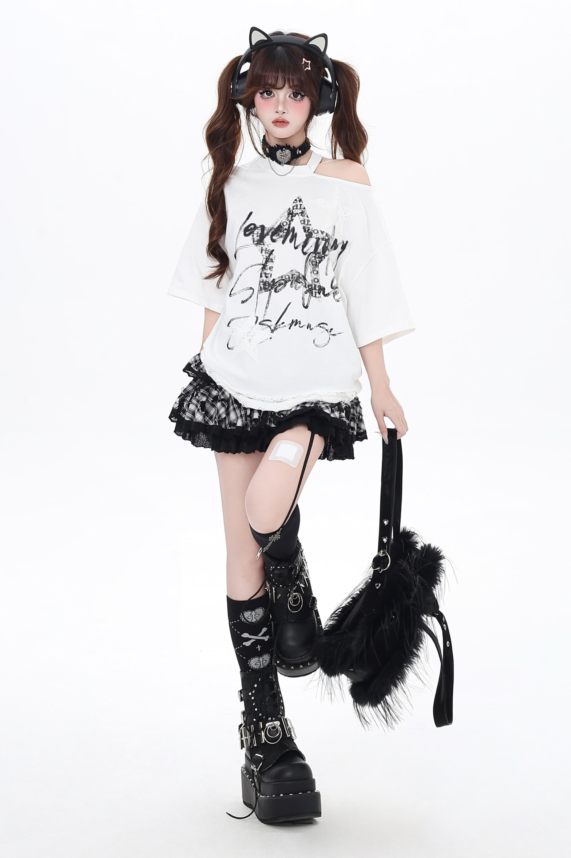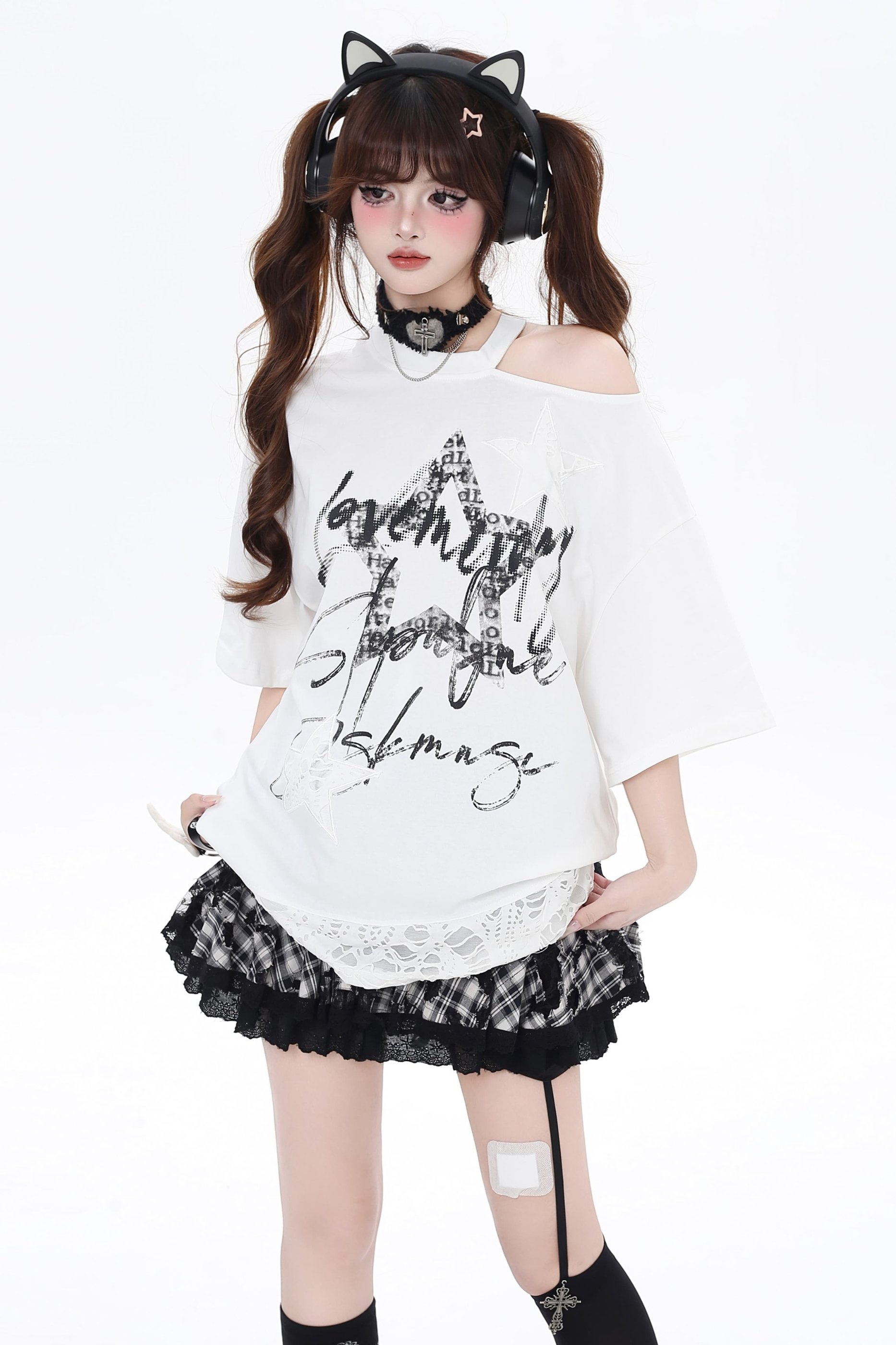 ホワイトとピンクのロリータボンネットチョーカー