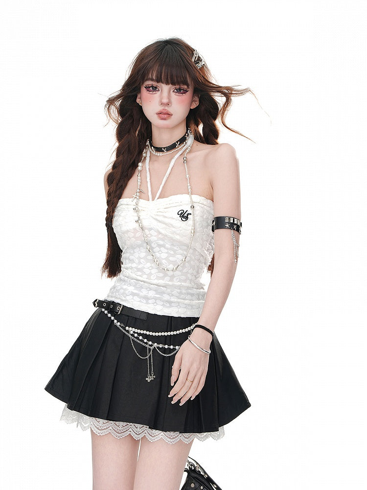 ストラップレストップ ホワイト ホルターネック スリムフィット グラマラス