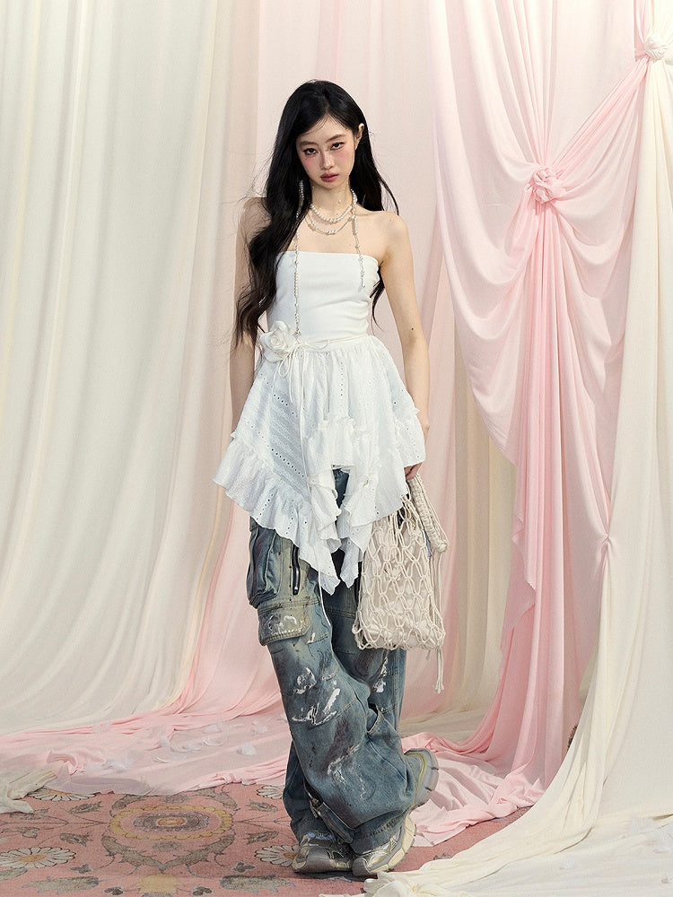 ストラップレストップ ホワイトハンカチヘム グラマラス