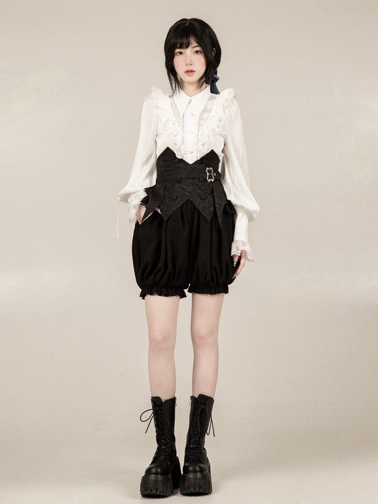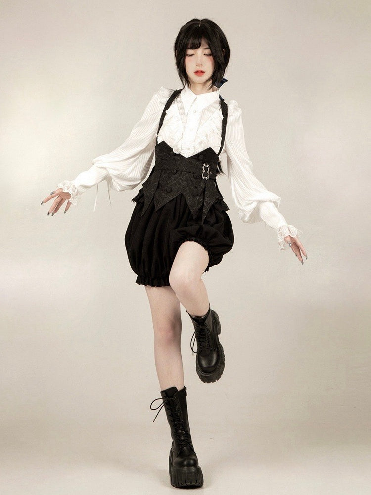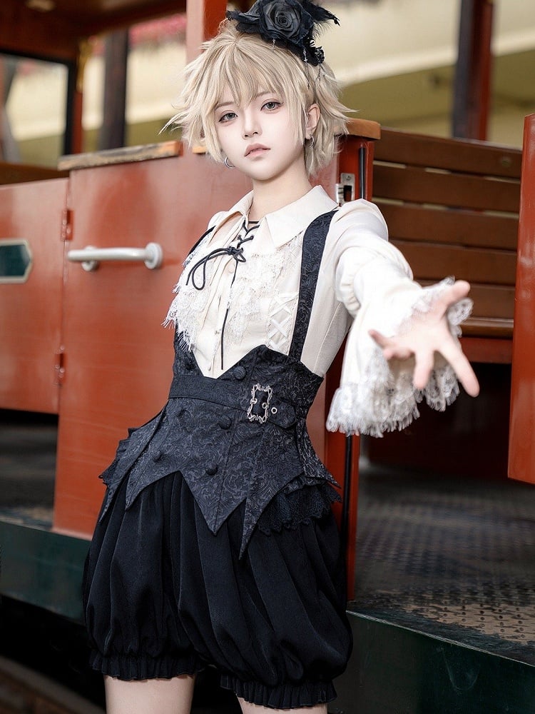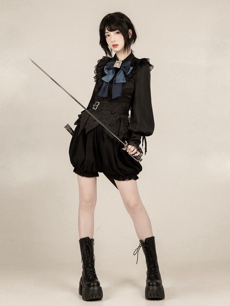 ゴシック王子ロリータセット - ストラップ付きブラックボーンコルセットベルト + ブルマーショーツ + ブルー蝶ネクタイ