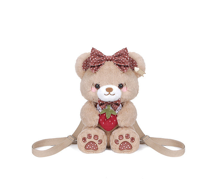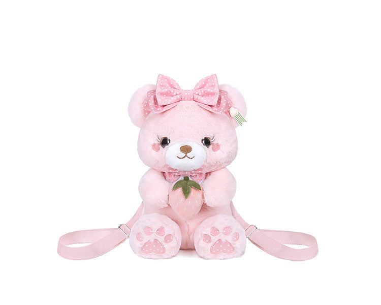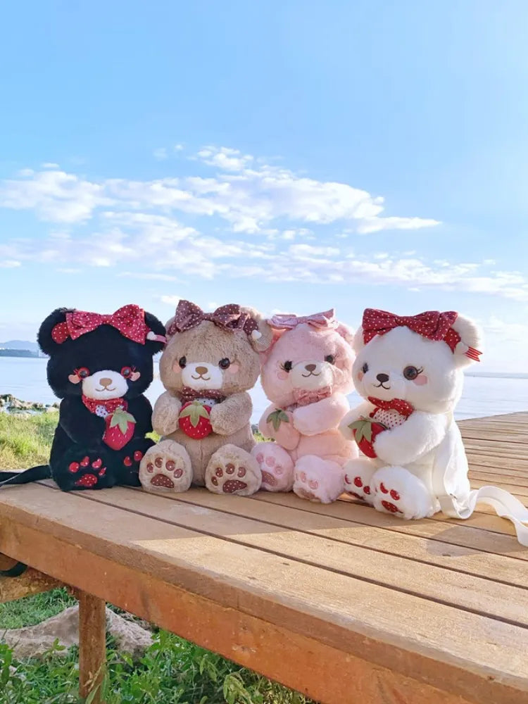 ストロベリーベア ホワイト/ブラック/コーヒー/ピンクのぬいぐるみバッグ