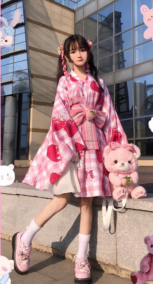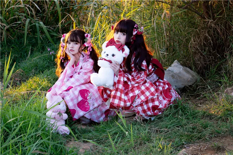 ピンクと白のオールドスクールロリータファッションドレス、蝶結びディテール、ロリータJSKセット